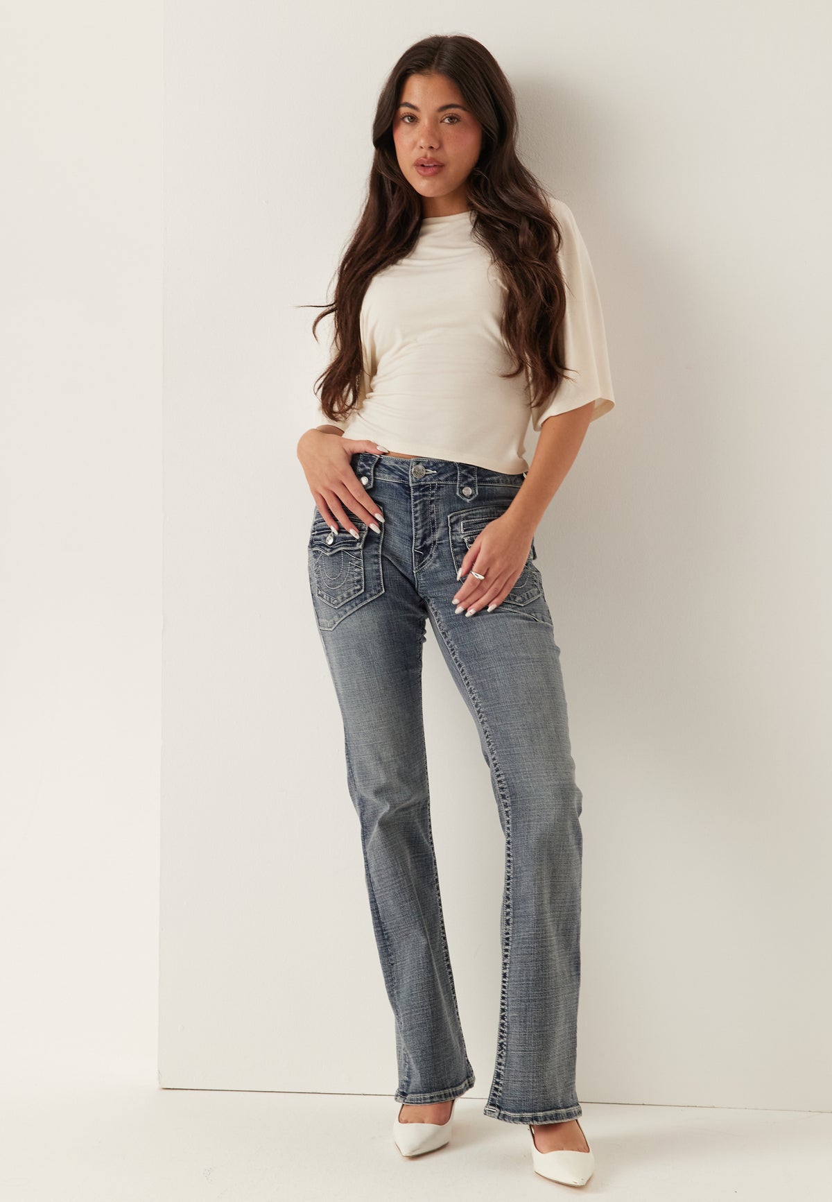 - Flared fit