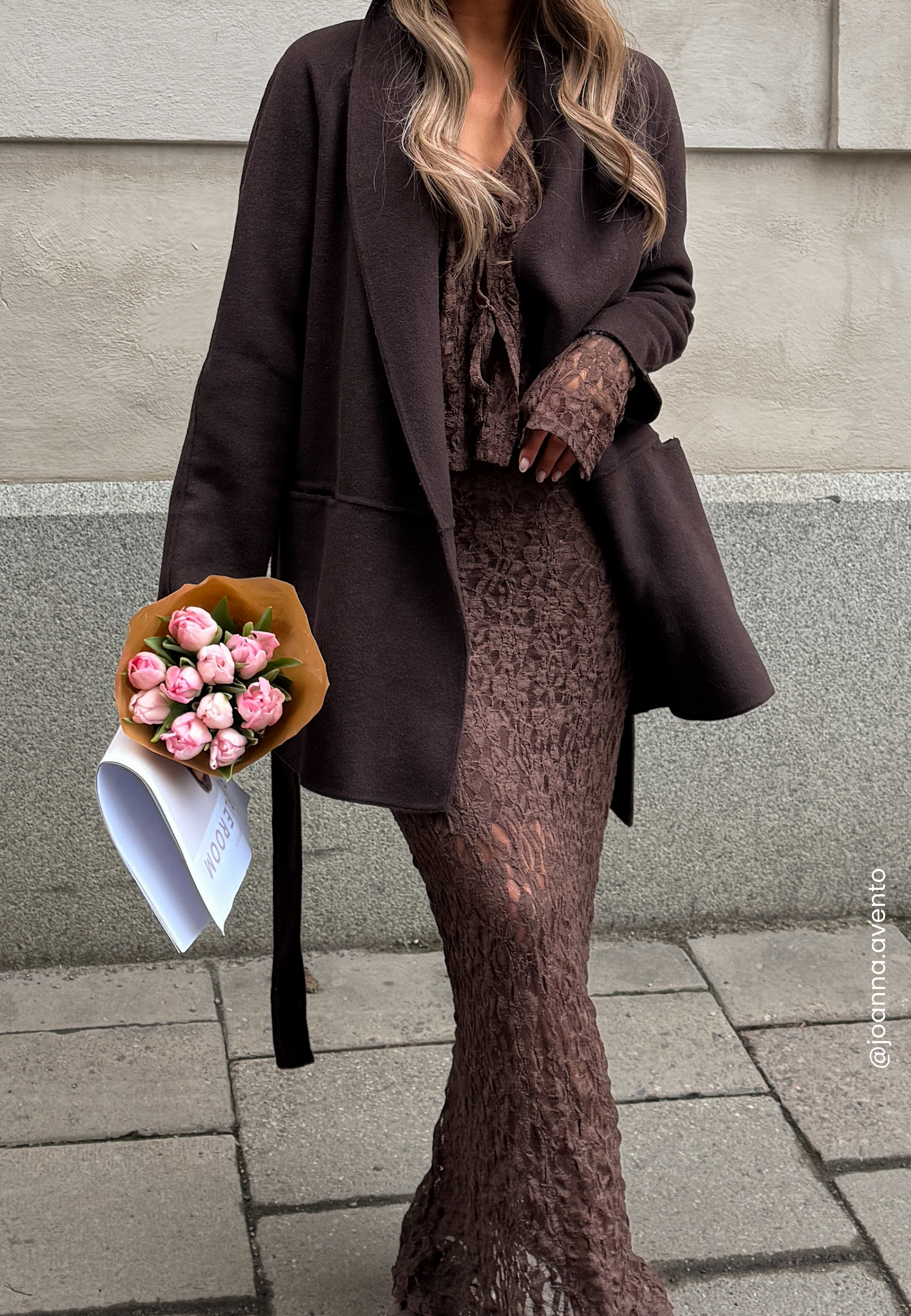 - Length from front shoulder: 84,5 cm in size S.