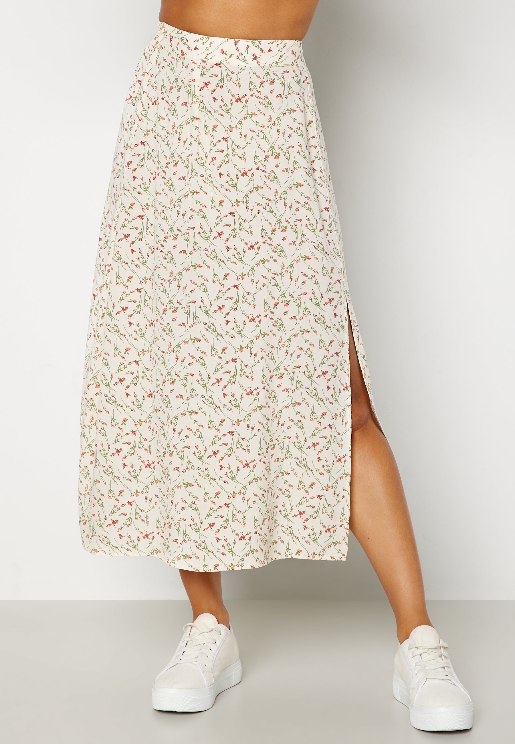 - Skirt with elastic at the waist and slit at the front.