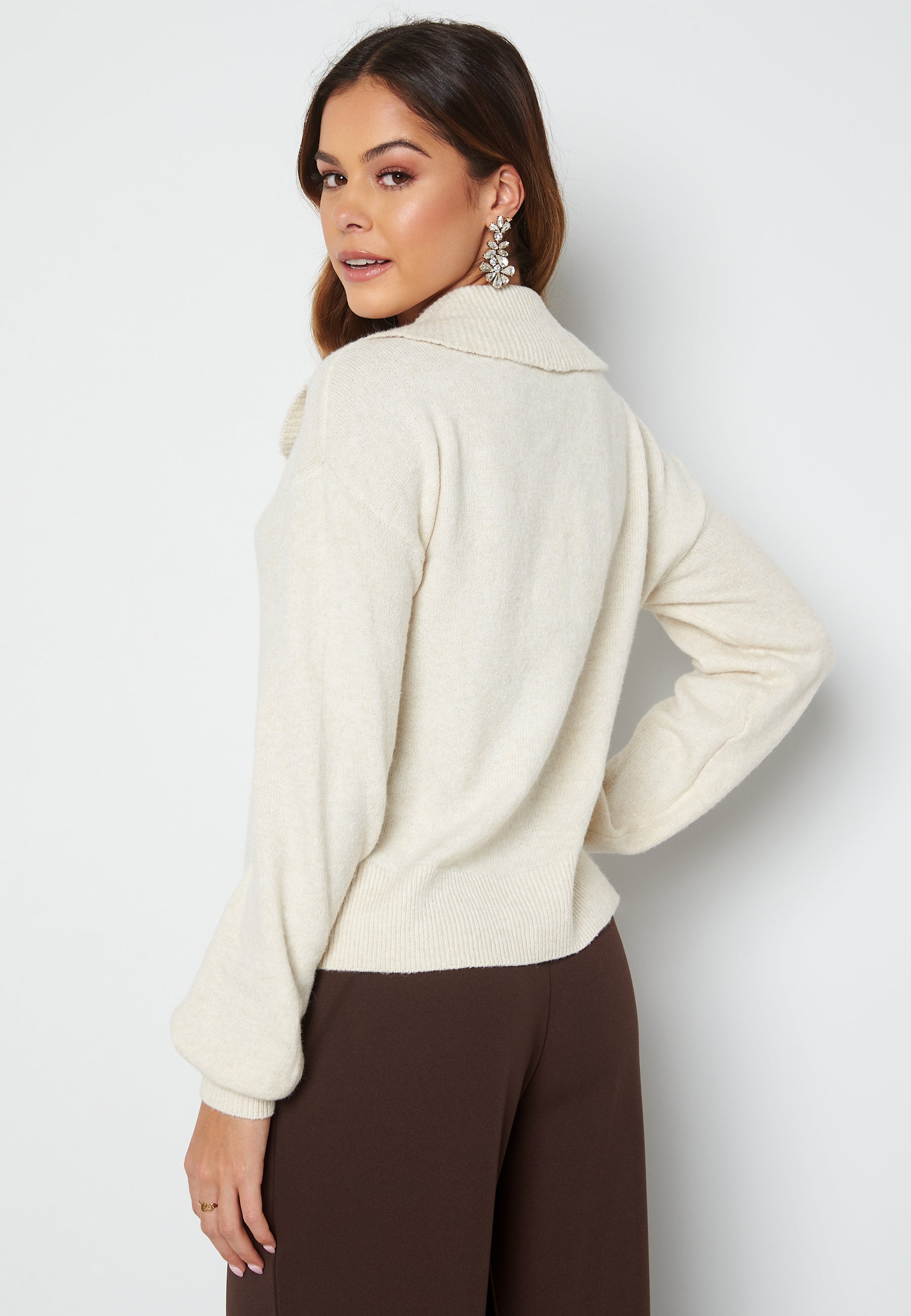 - Rounded neckline with big collar