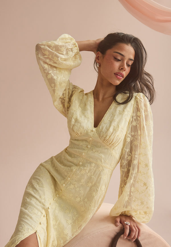 - Sheer, woven quality with embroidery