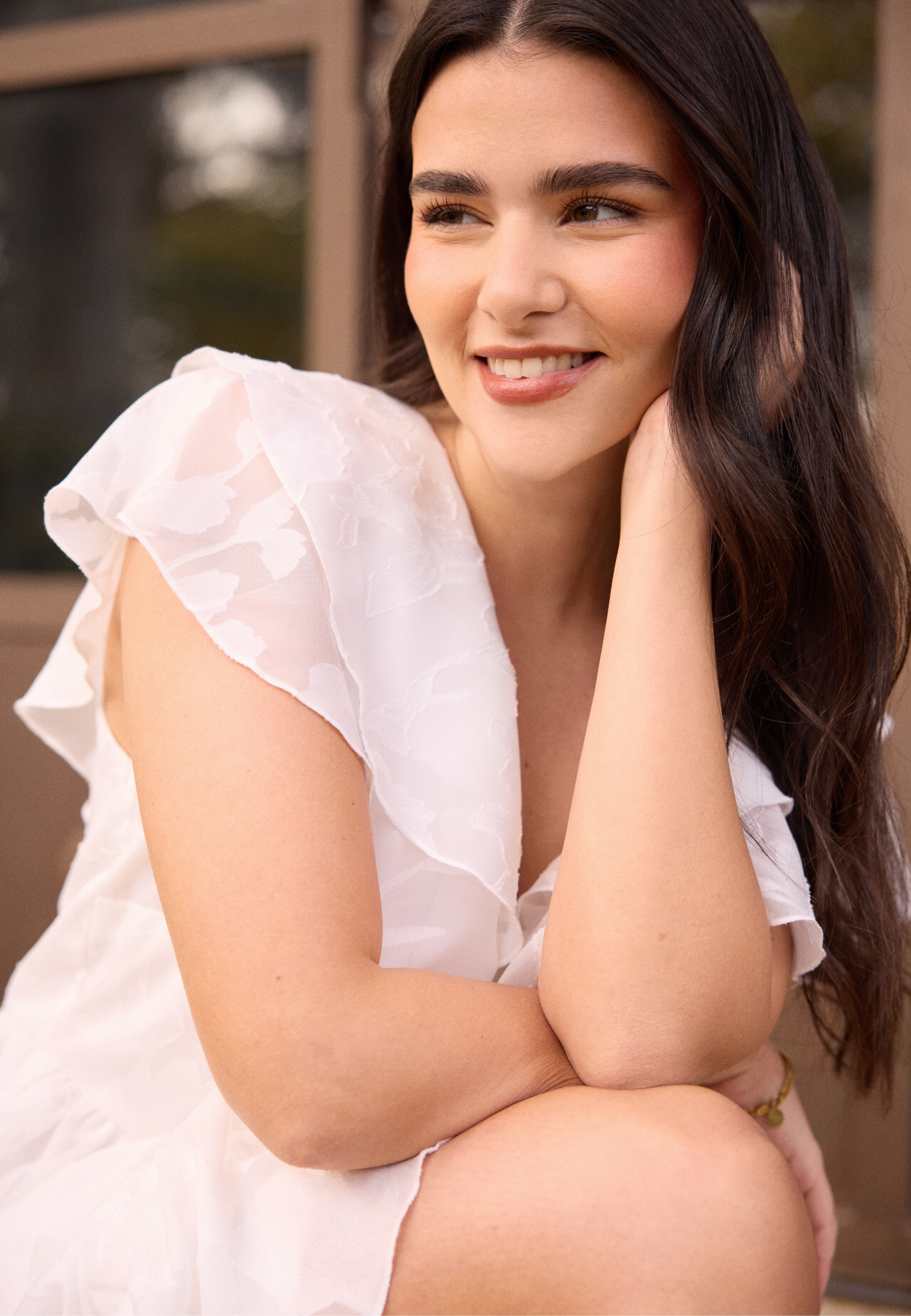 - Neckline with frills.