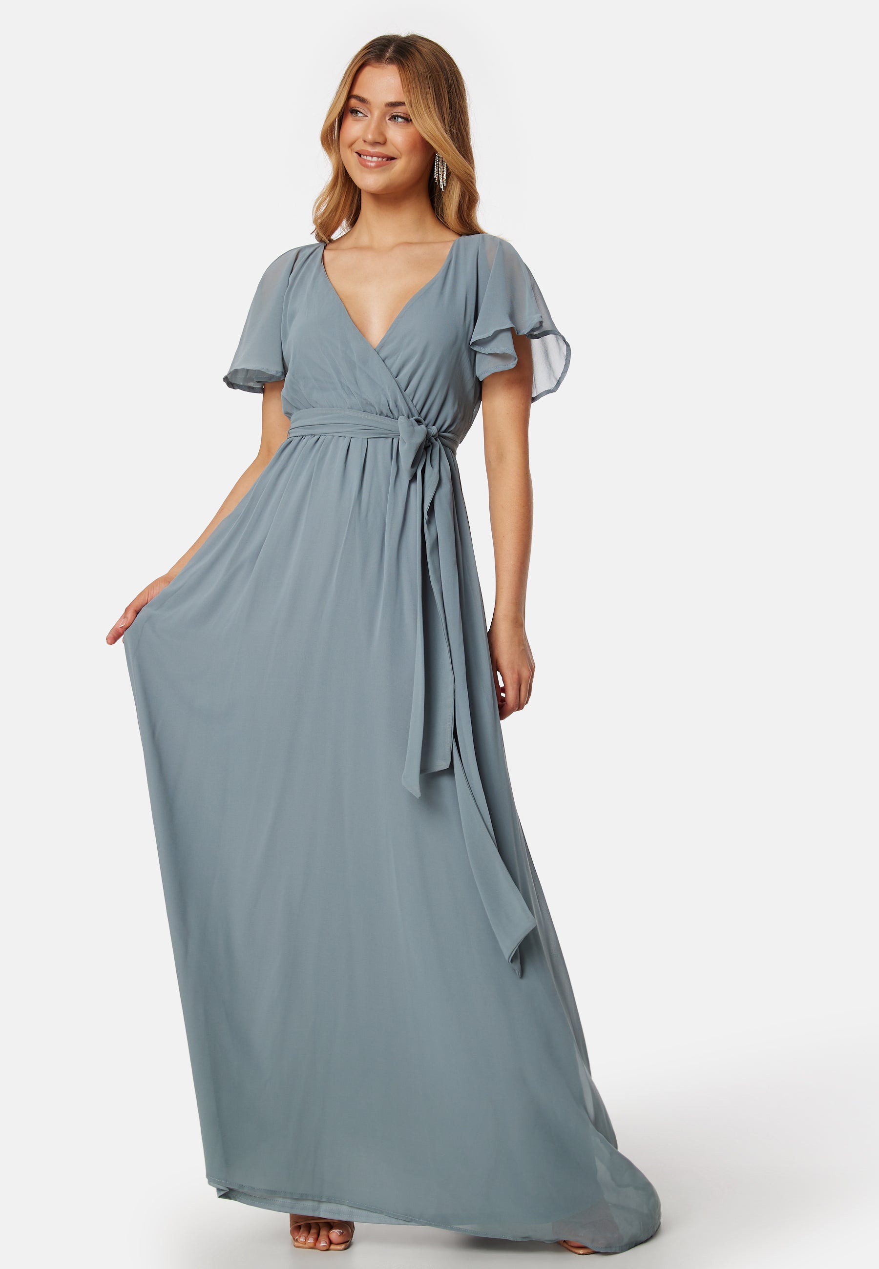 Dress by Goddiva with flounce sleeve.