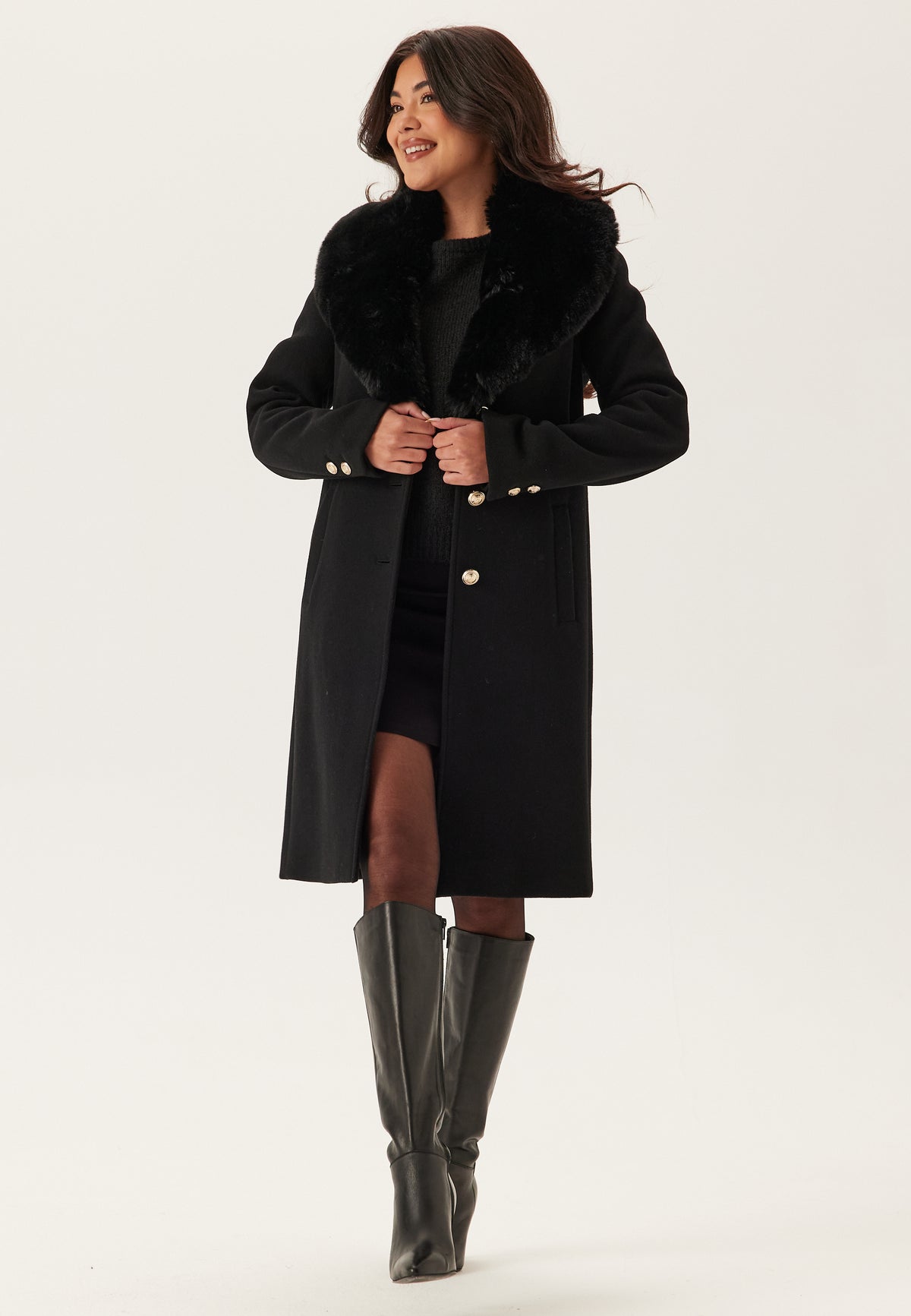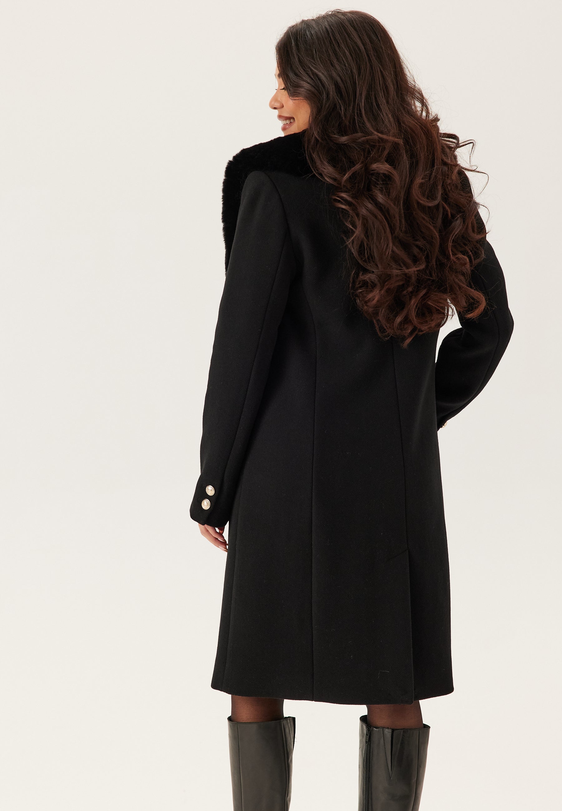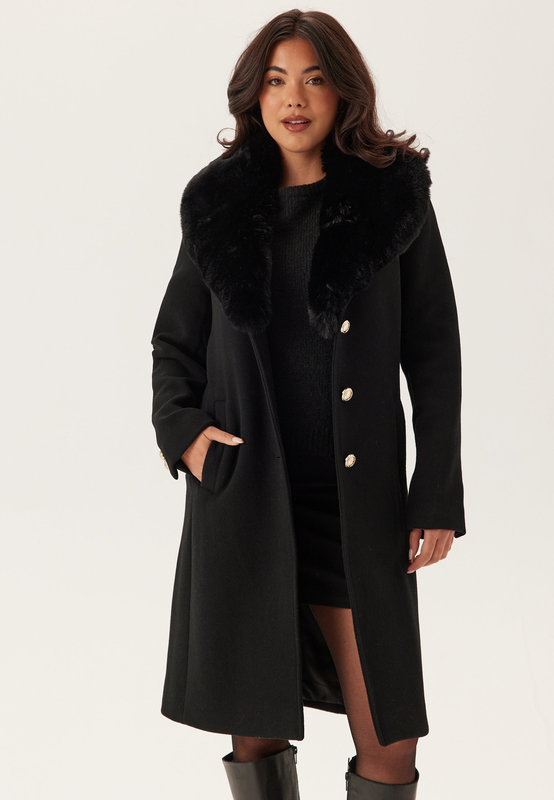 - Removable faux-fur collar