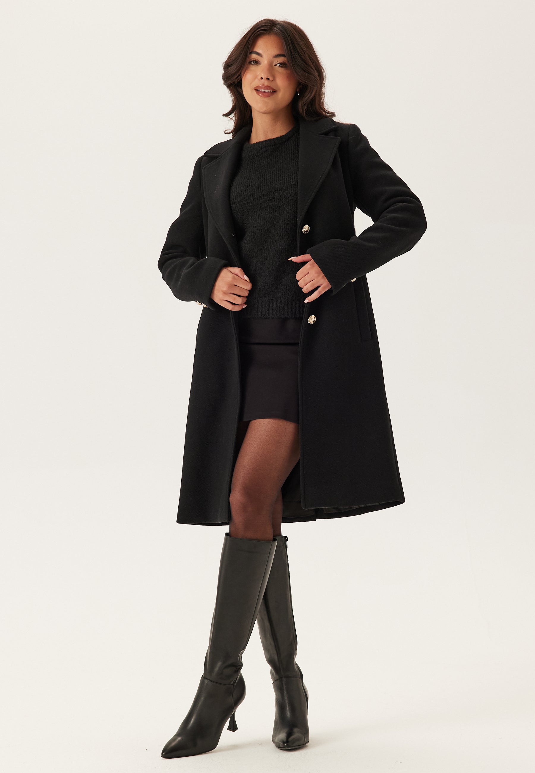 - Straight, gently fitted fit