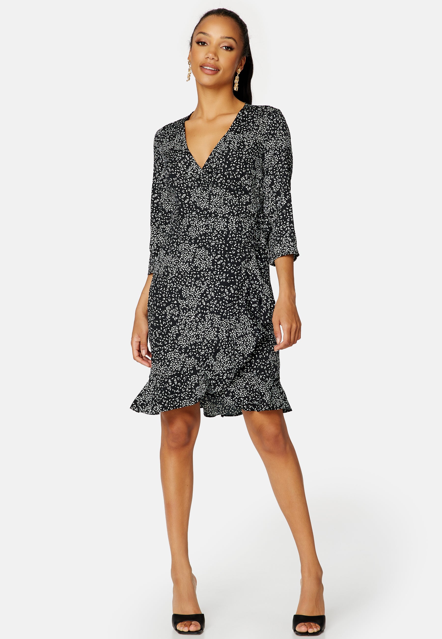 Lovely flounce dress made from recycled polyester from VERO MODA. - Nonstretch, woven quality - Wrap style with side tie (non-detachable) - Flounce at hemline - V-neck Back length from shoulder 101 cm in size S. Machine wash at 30 degrees.