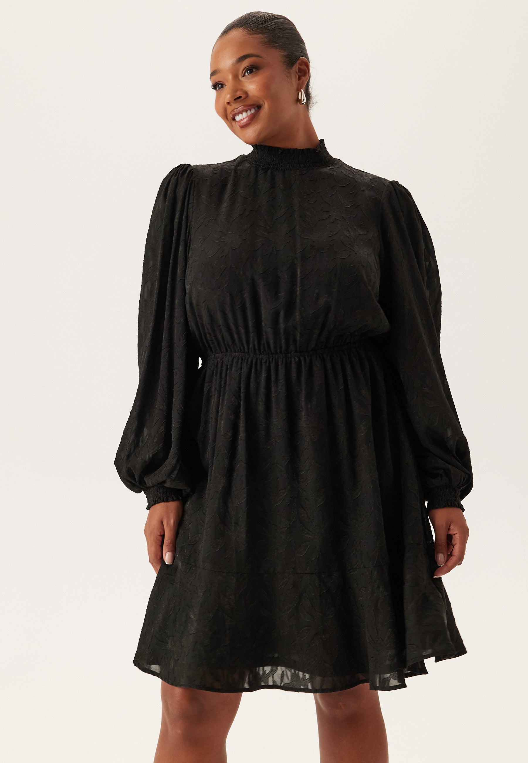 - Balloon sleeves with smocked cuff