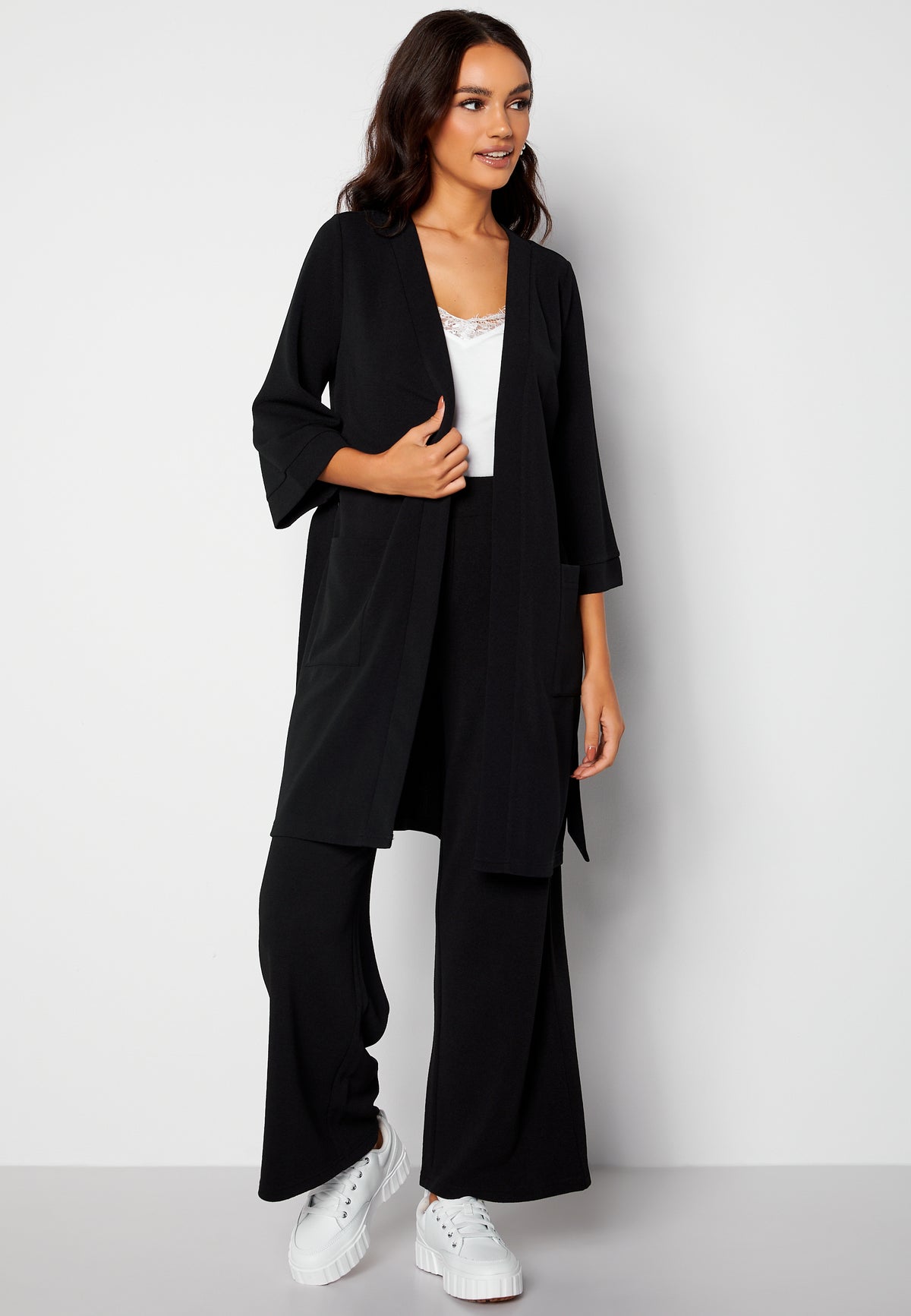 • Stylish wide leg pants from HAPPY HOLLY. The pants have an elasticated waist and are made from a stretchy jersey fabric. Can be worn as a set together with the associated kimono, art. no. 702734.