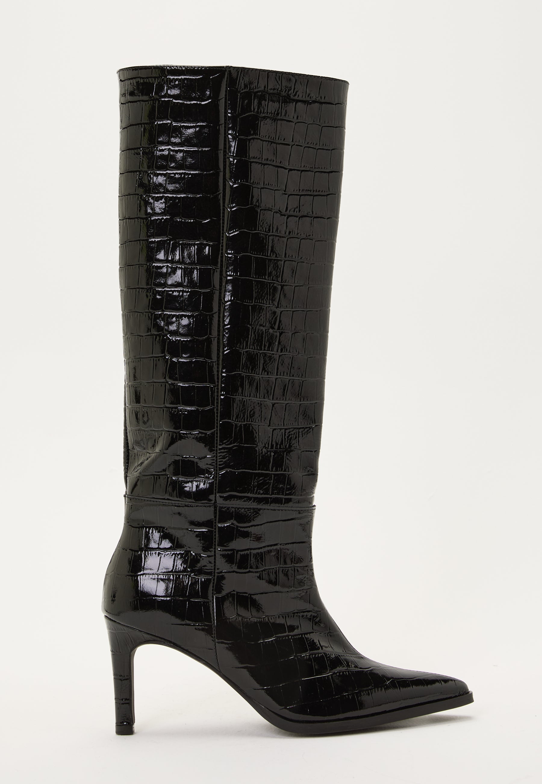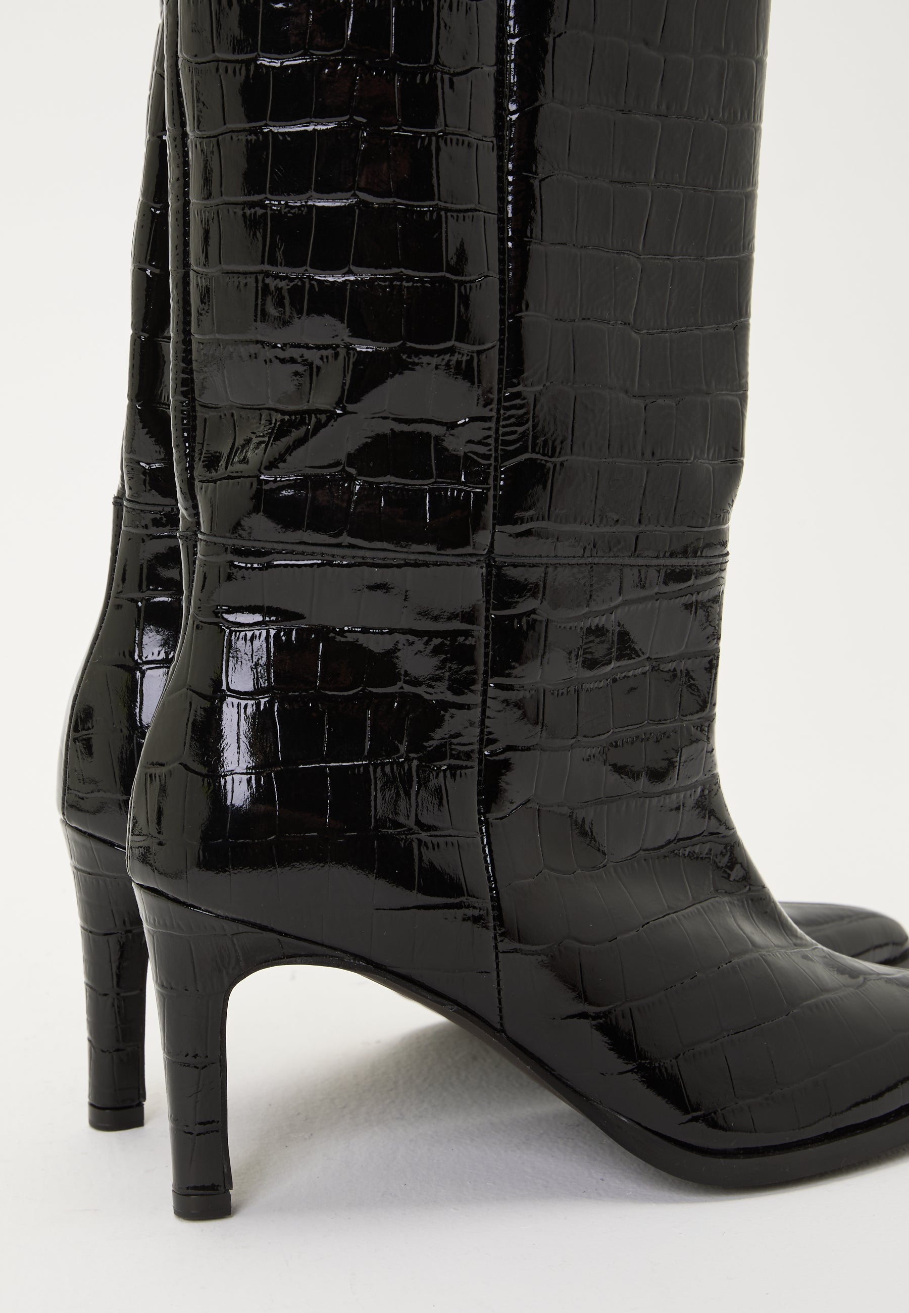 High-heeled boot in leather by MAKE WAY with a crocodile pattern