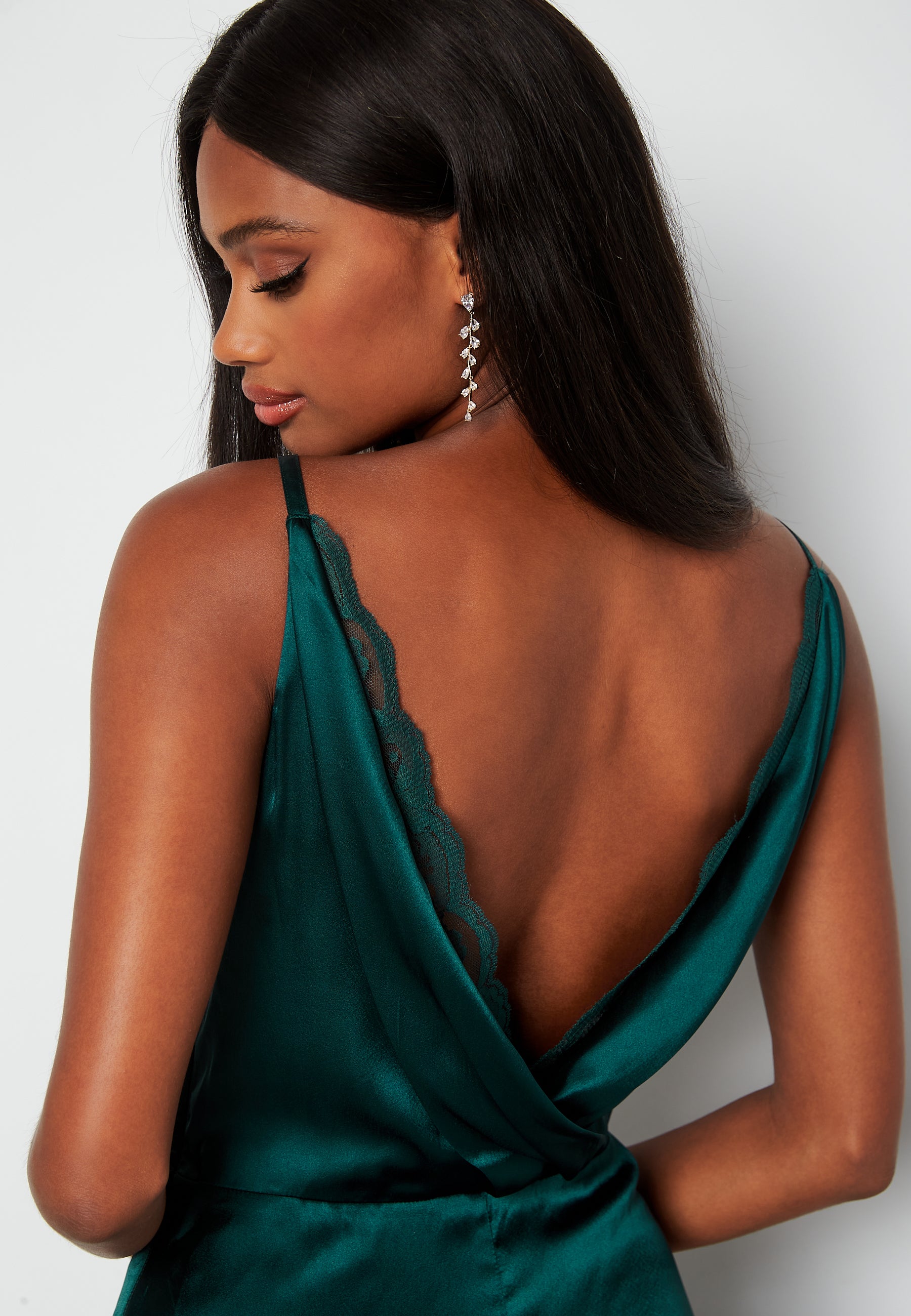 Elegant, satin dress by Bubbleroom Occasion with open back and feminine draping.