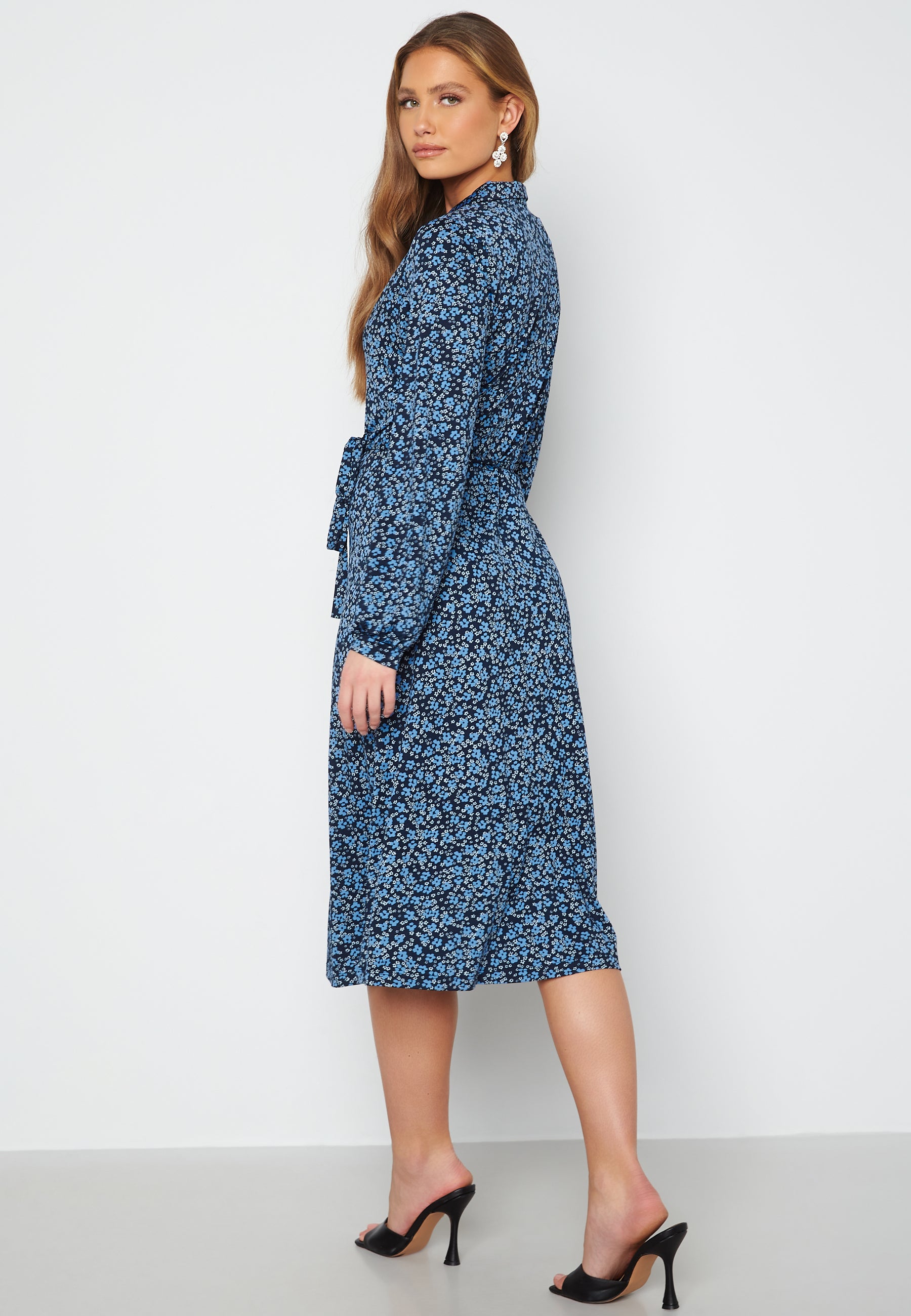 Crease-free midi dress in jersey with shirt collar.