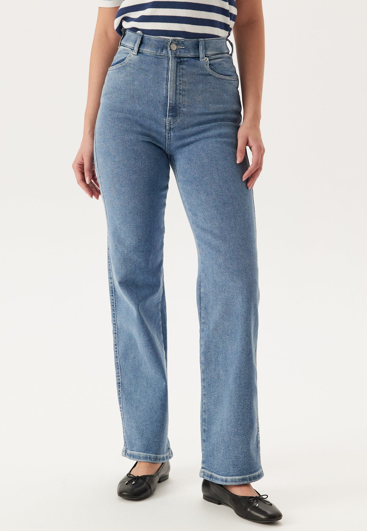 - Slim fit at the top with straight leg