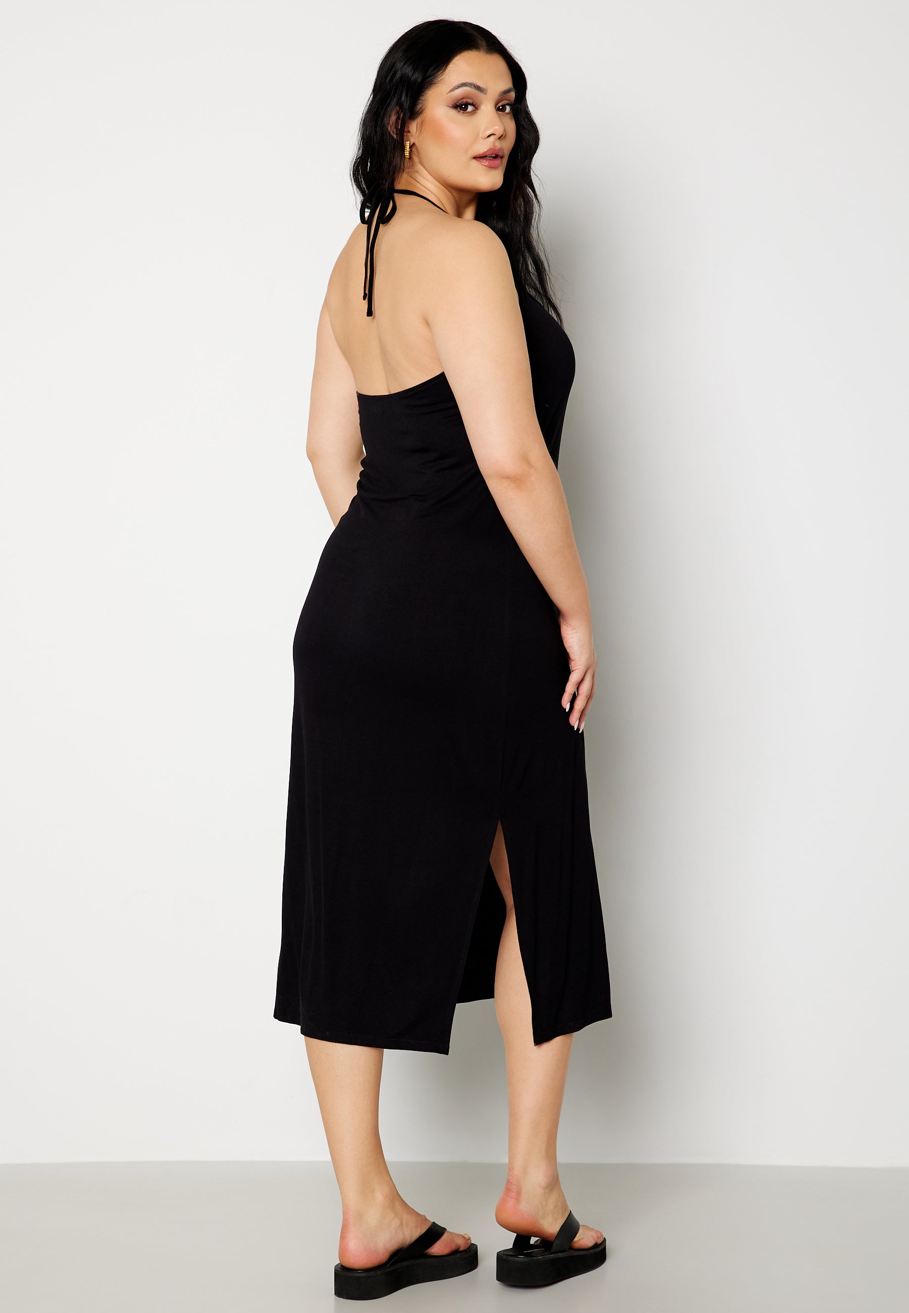 Midi dress by BUBBLEROOM with halterneck tie.