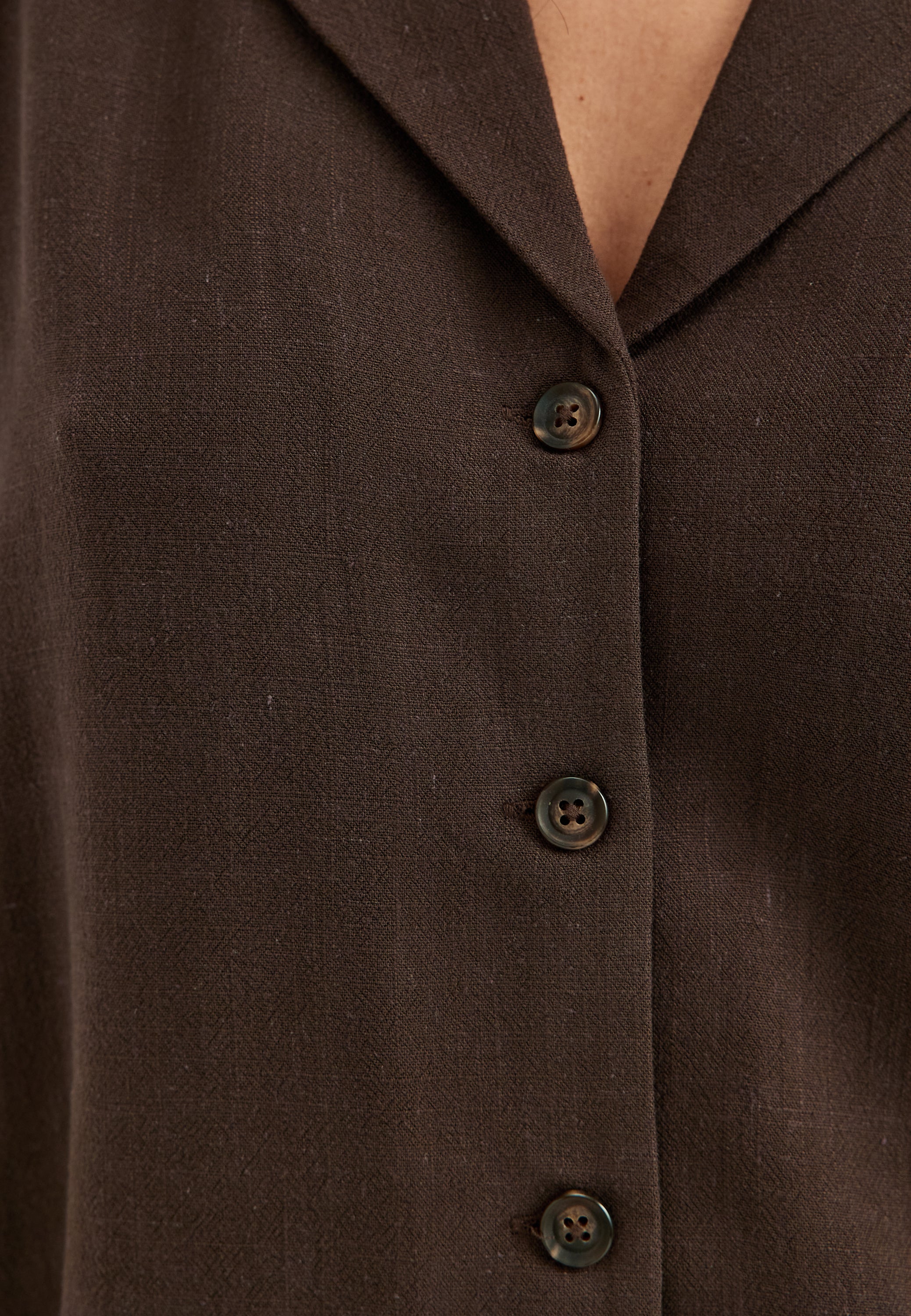 The laid-back fit makes it simple to wear loose over jeans, tucked into tailored trousers, or styled as a matching set with style 716245. In the rich dark brown shade shown here, it feels especially versatile—easy to dress down with denim and sandals or sharpen up with smarter separates.