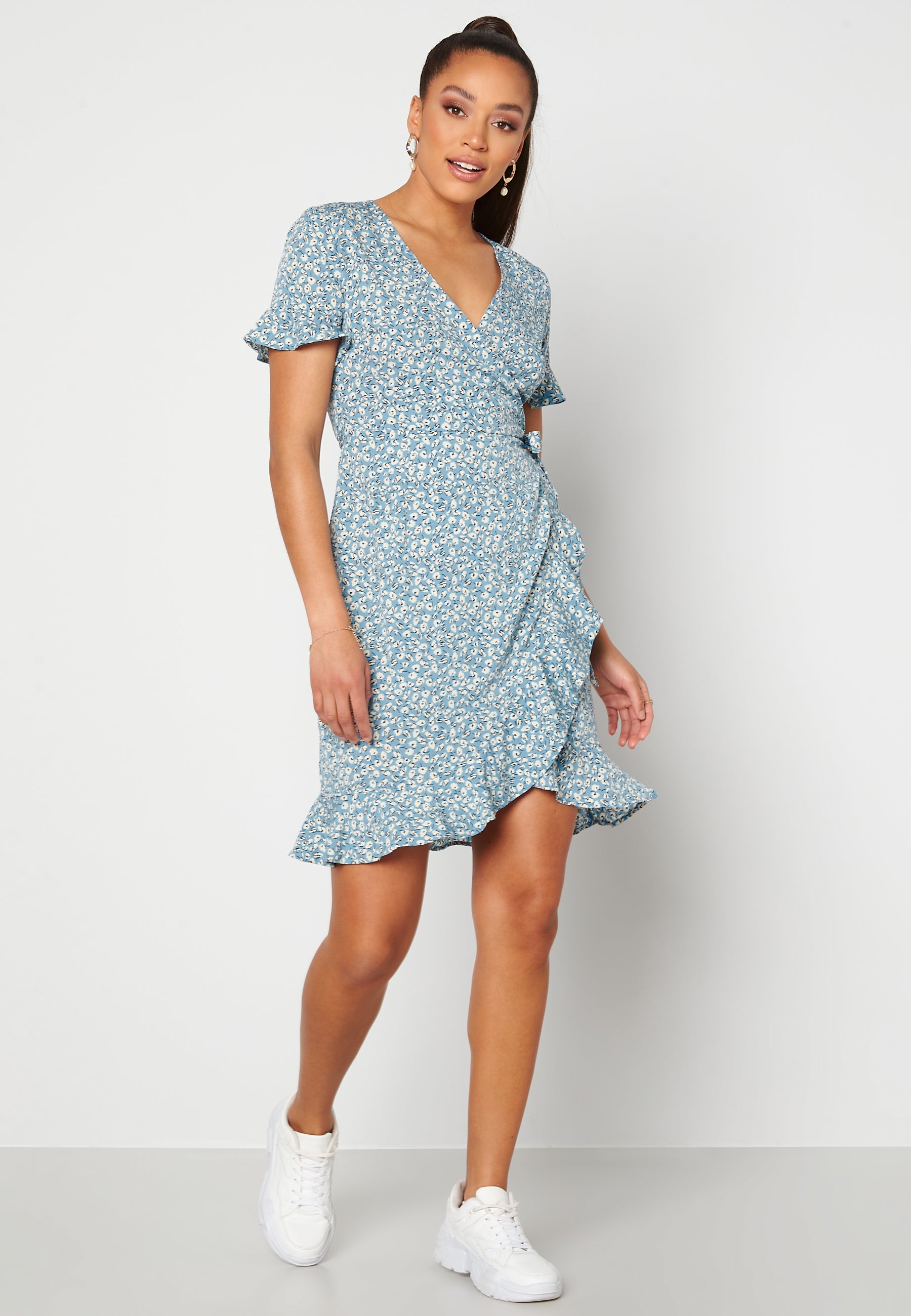 - Wrapover at the front with pretty flounce