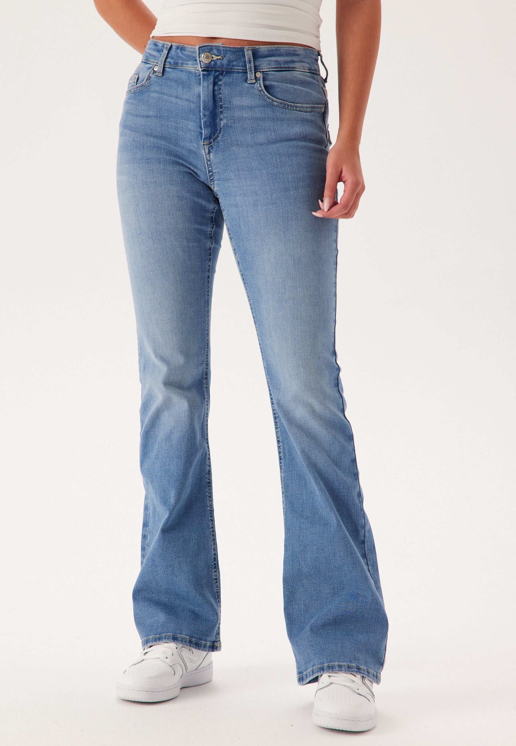 - Flared fit.