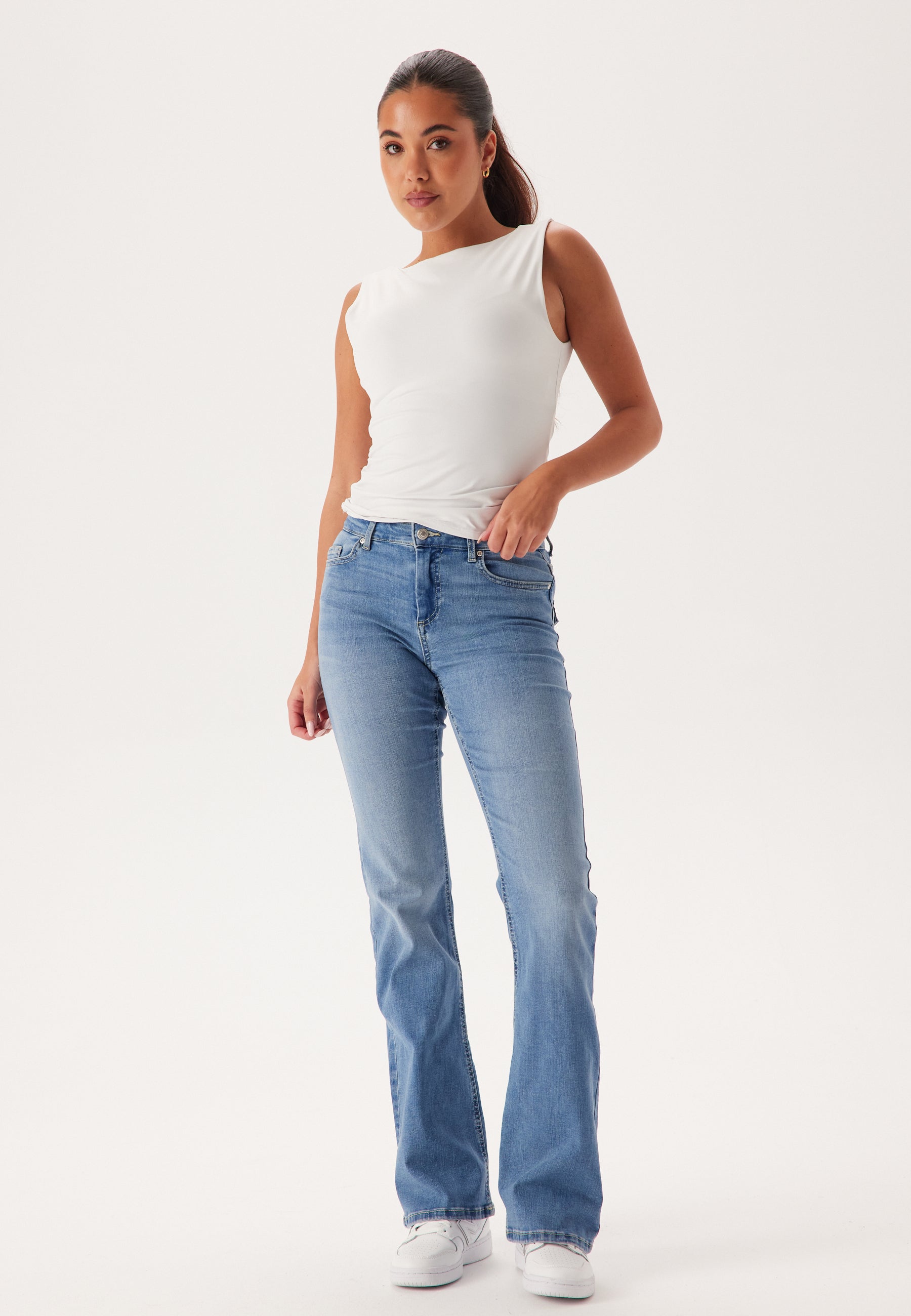 - Mid waist.