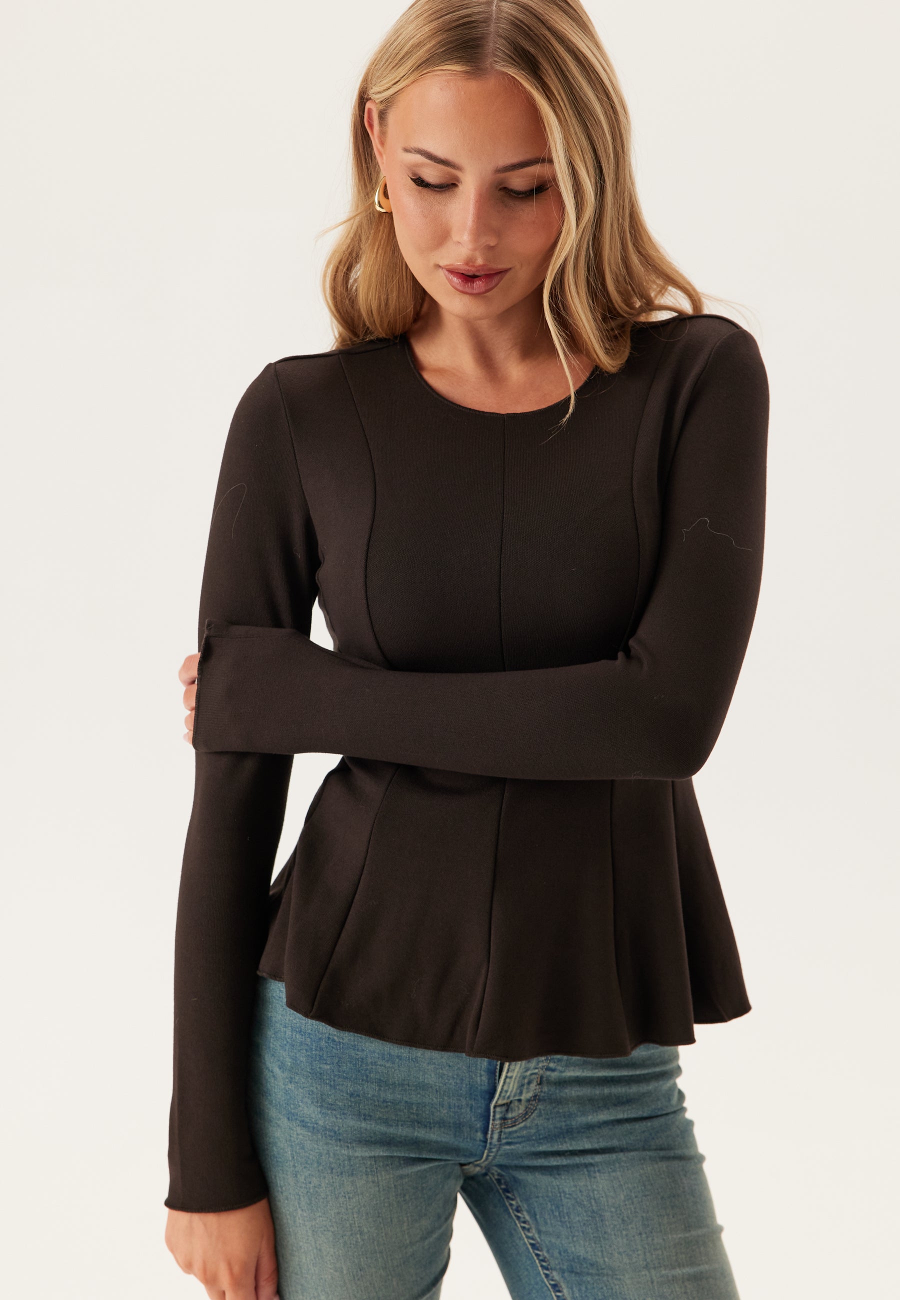 - Figure-fit fit with peplum design