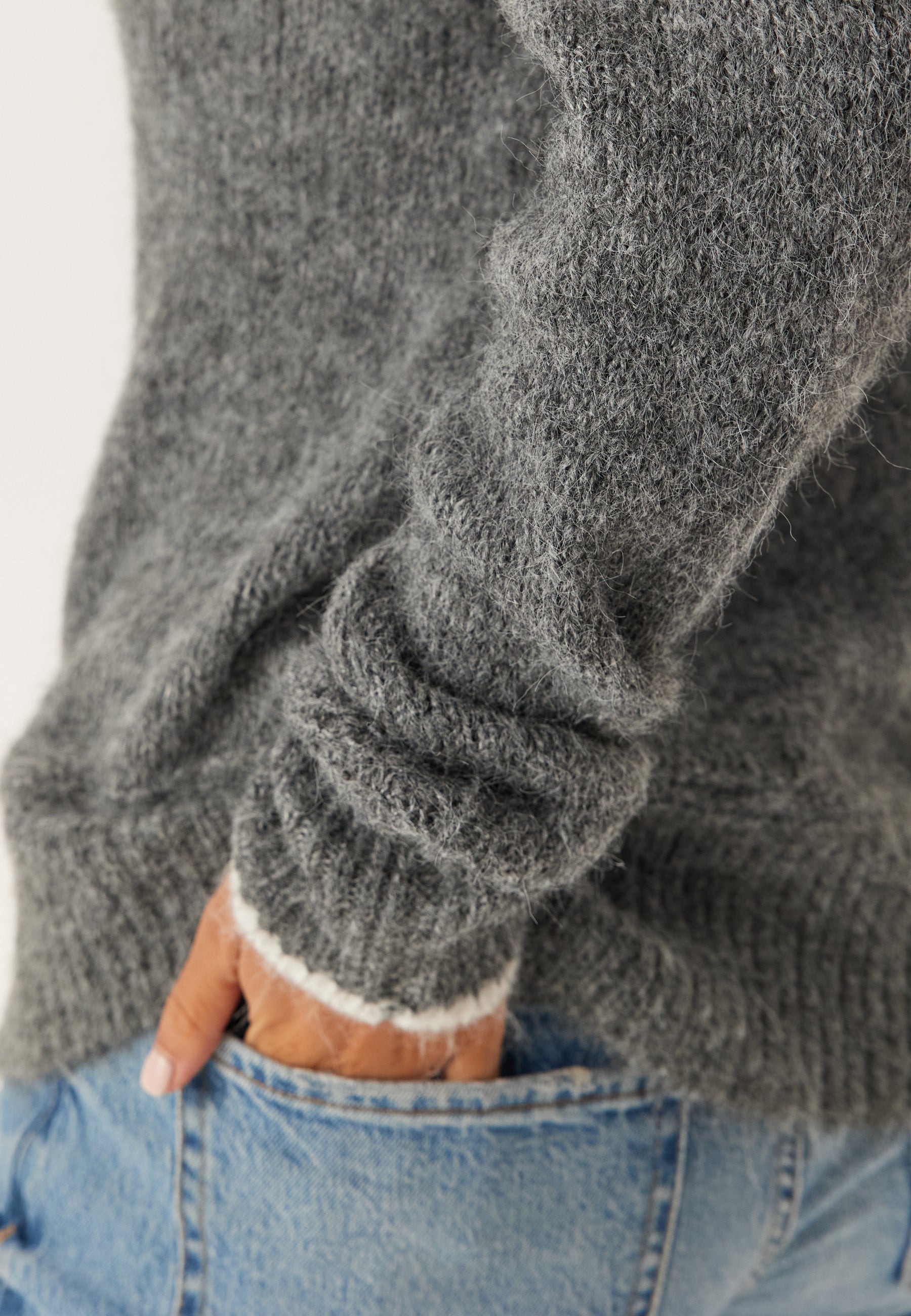 - Contrast color on the collar and on the sleeve ends