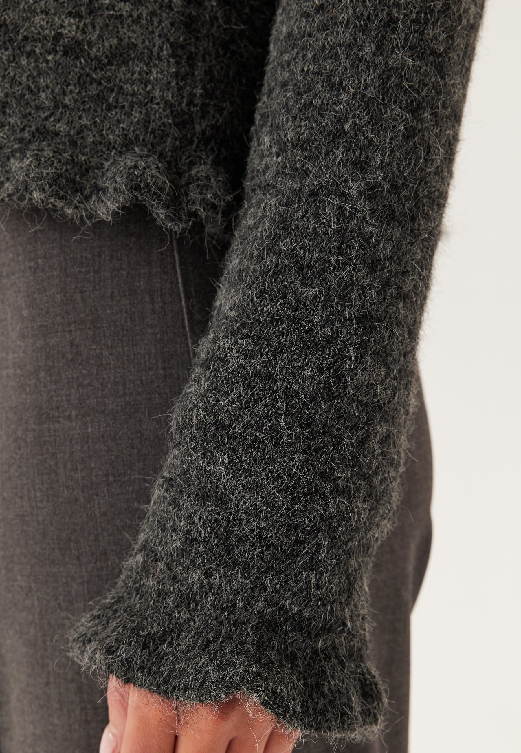 - Flounced detail on the sleeve ends and at the hem