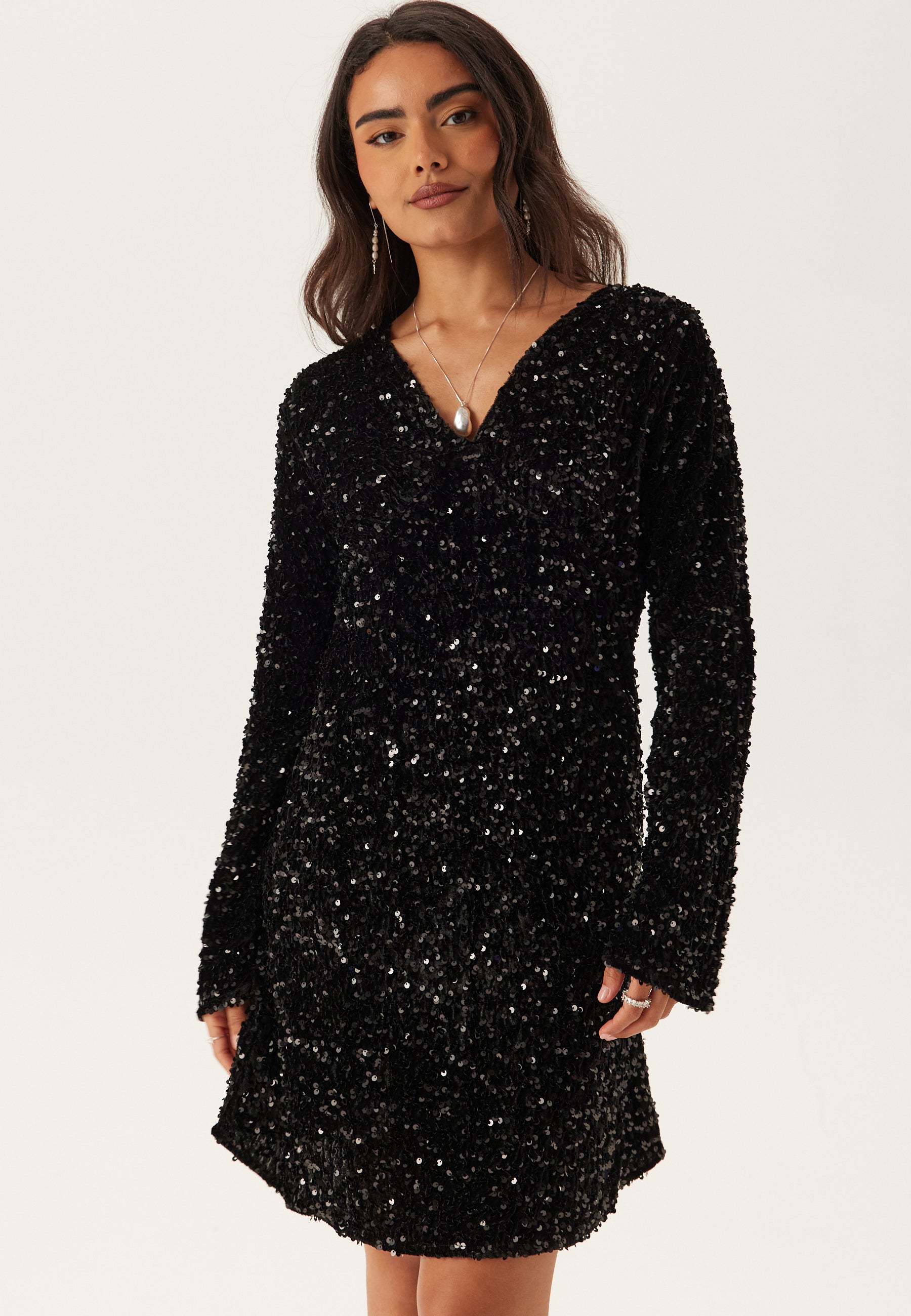 • Long-sleeved sequin dress by Pieces