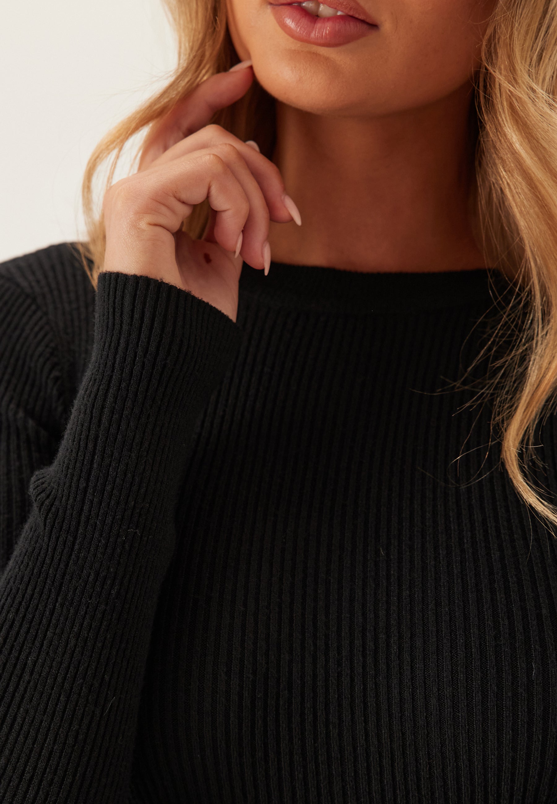- Stretchy, rib-knit material