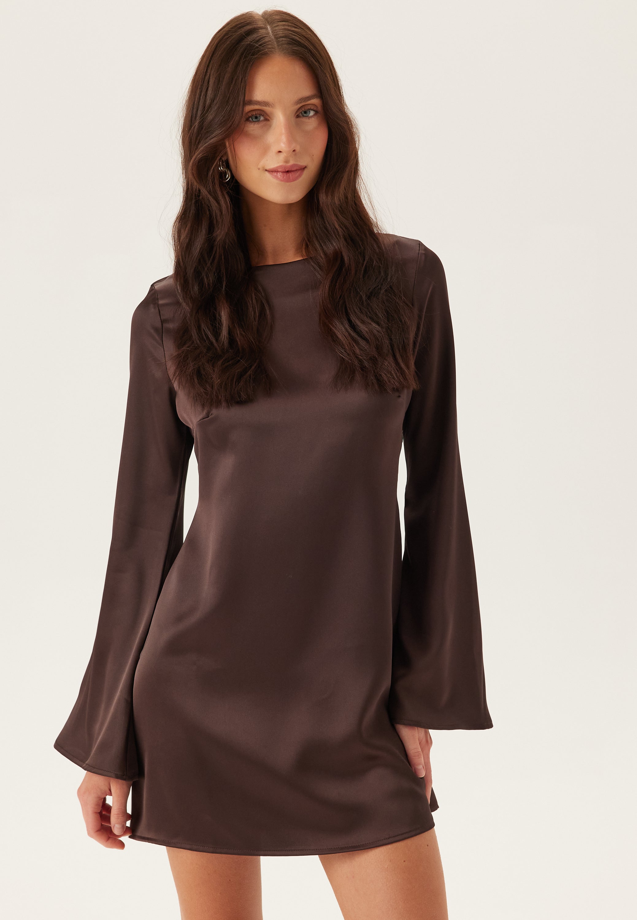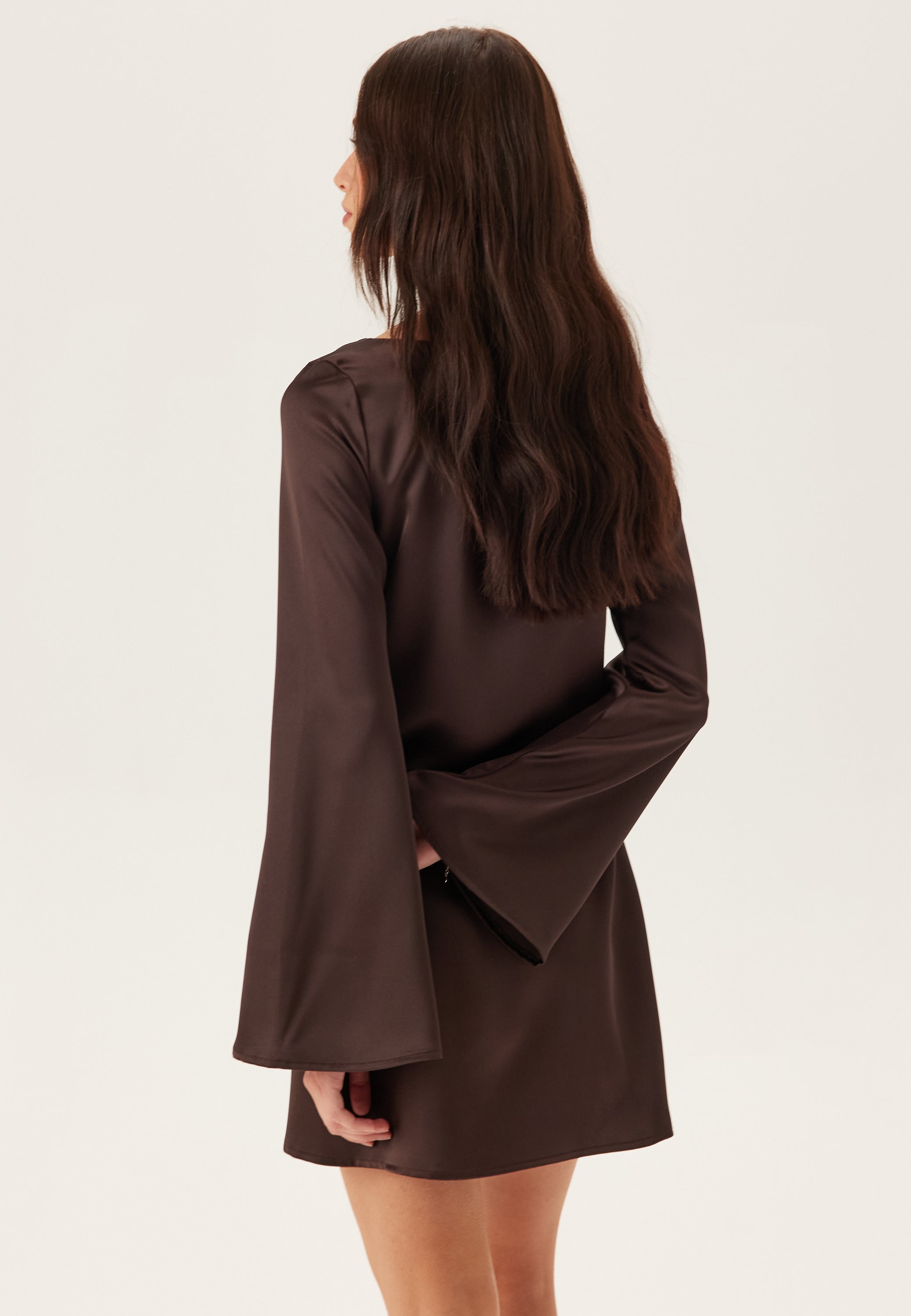Satin Trumpet Sleeve Short Dress