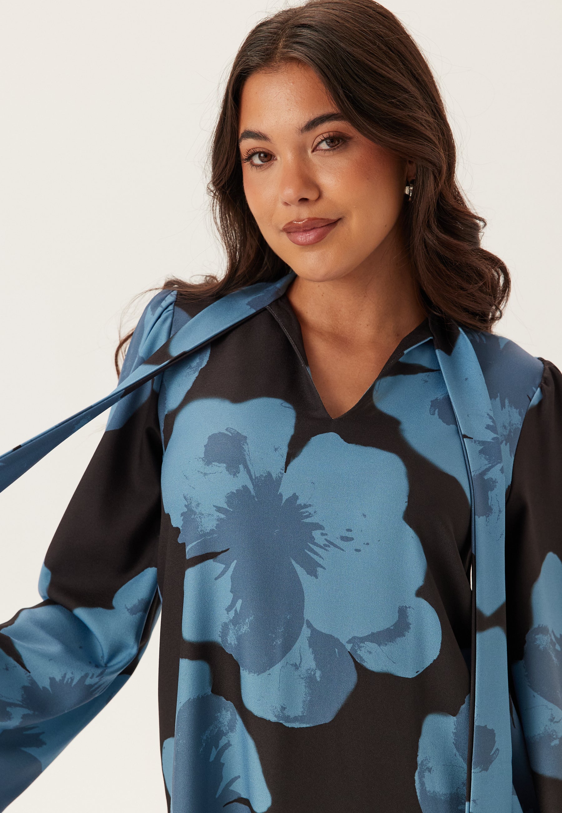 - V-shaped neckline with tie detail
