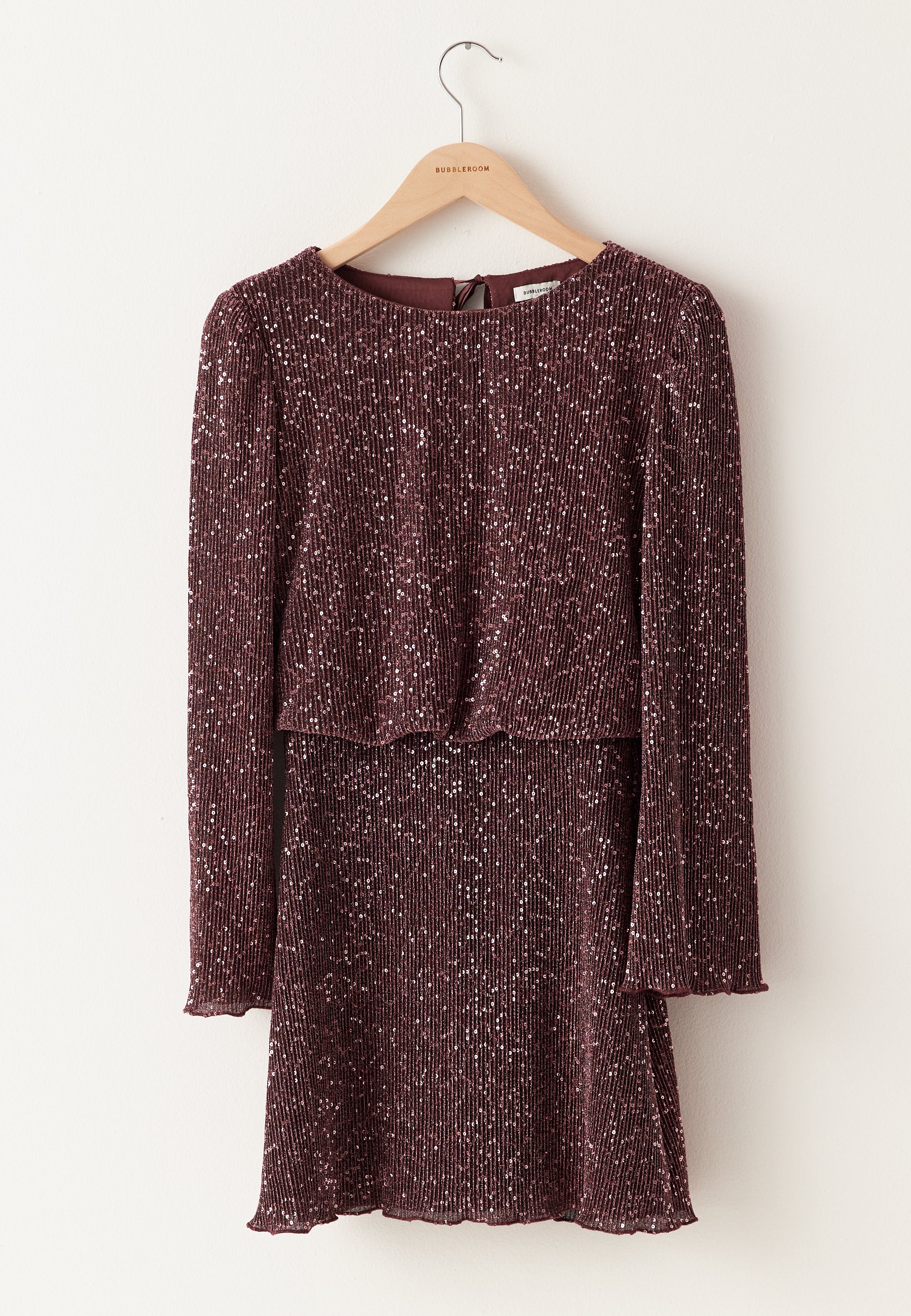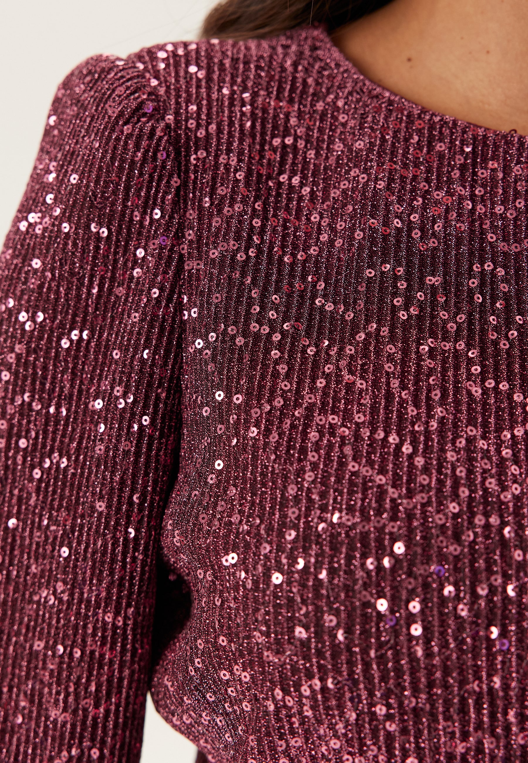 - Stretchy, tricot quality with a sequined outer fabric