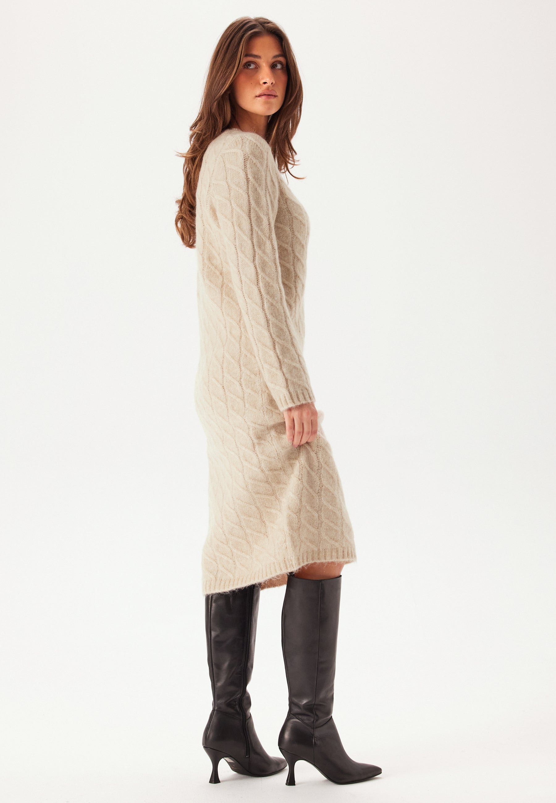 - Stretchy, cable knit material.