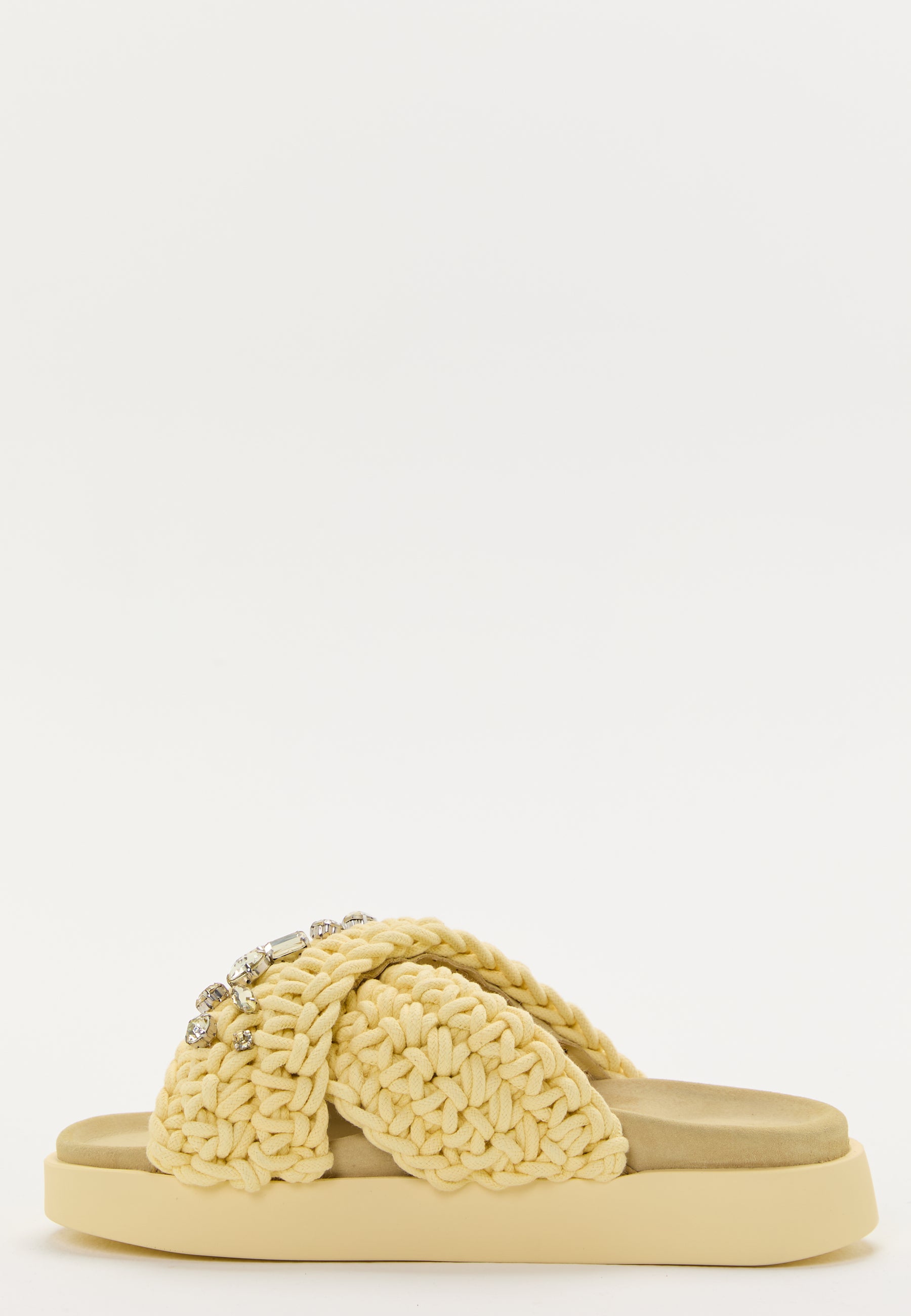Outside: 95% Cotton, 5% Polymethyl methacrylate Lining: 100% Leather- Goat Inner sole: 100% Polyurethane Outer sole: 100% Polyurethane