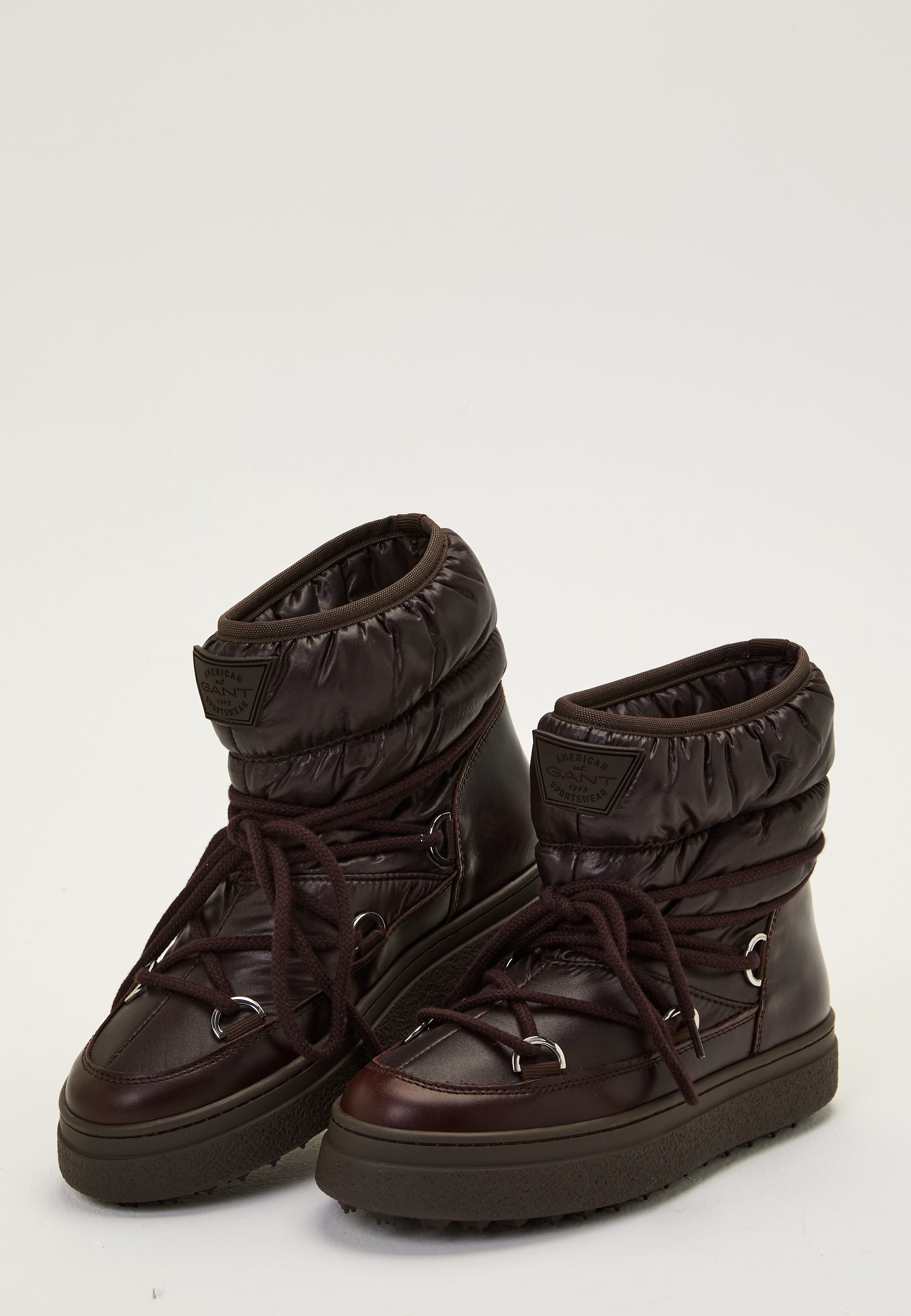 Outer material: 70% Nylon, 30% Leather- Cow Lining: 100% Wool Inner sole: 100% Wool Outer sole: 100% Thermoplastic rubber