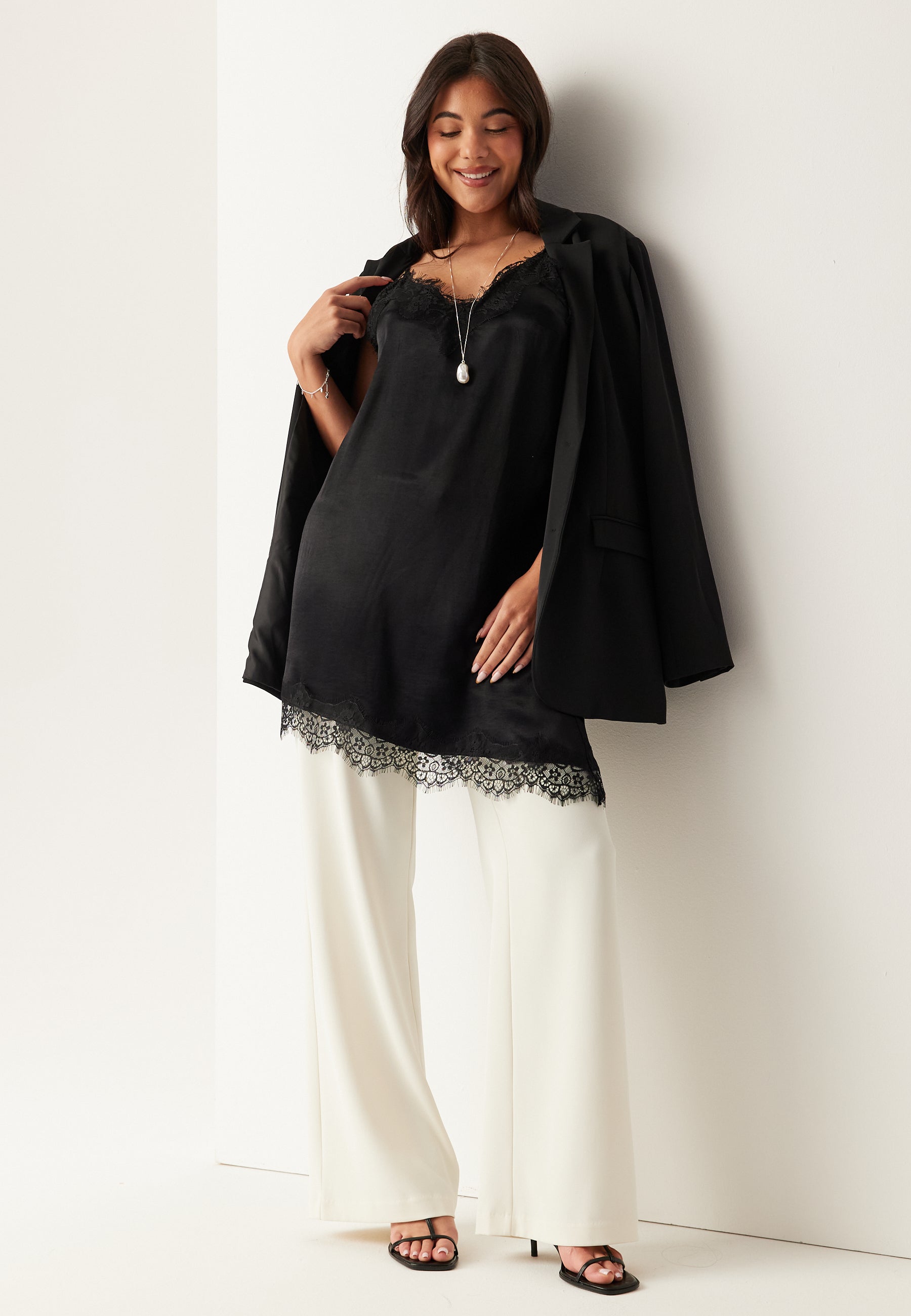 - Lace at the neck and at the bottom