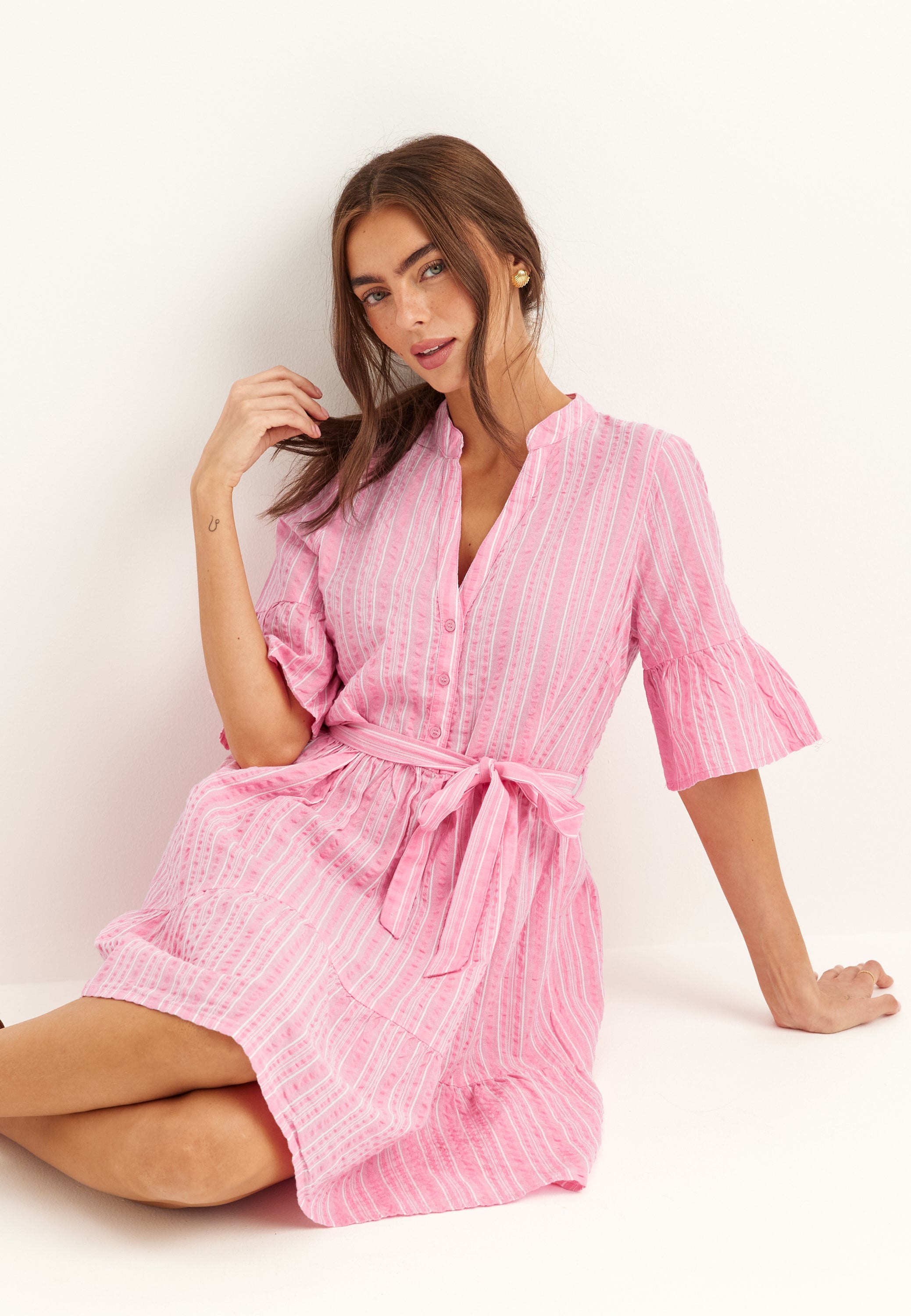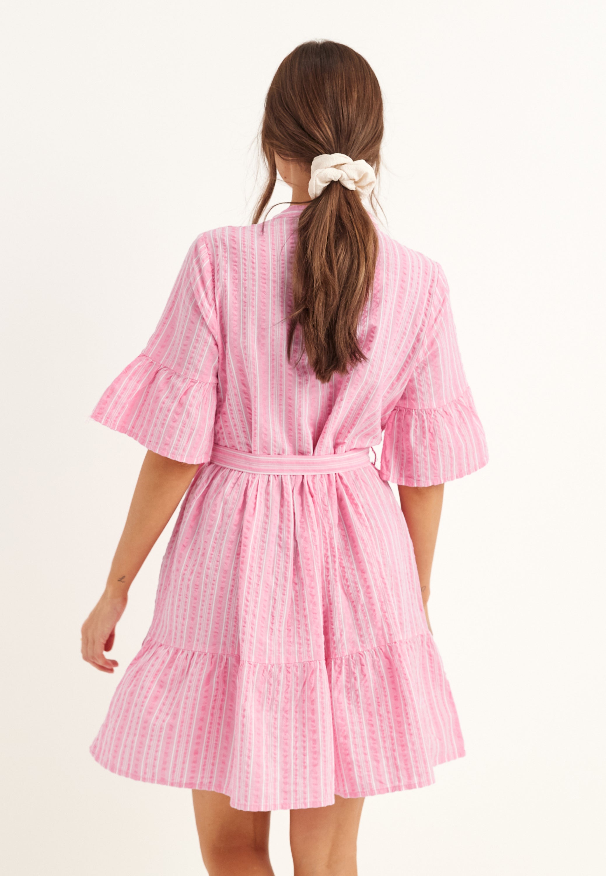 - Defined waist with removable self-tie belt