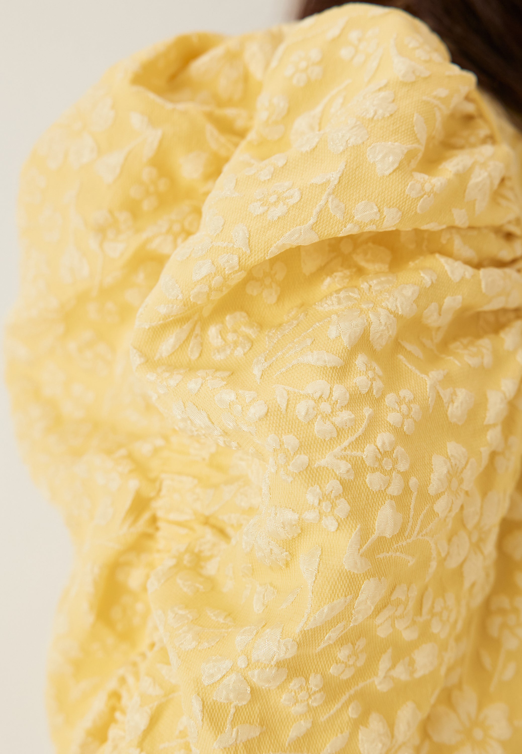 - Woven material with flowers and slight stretch