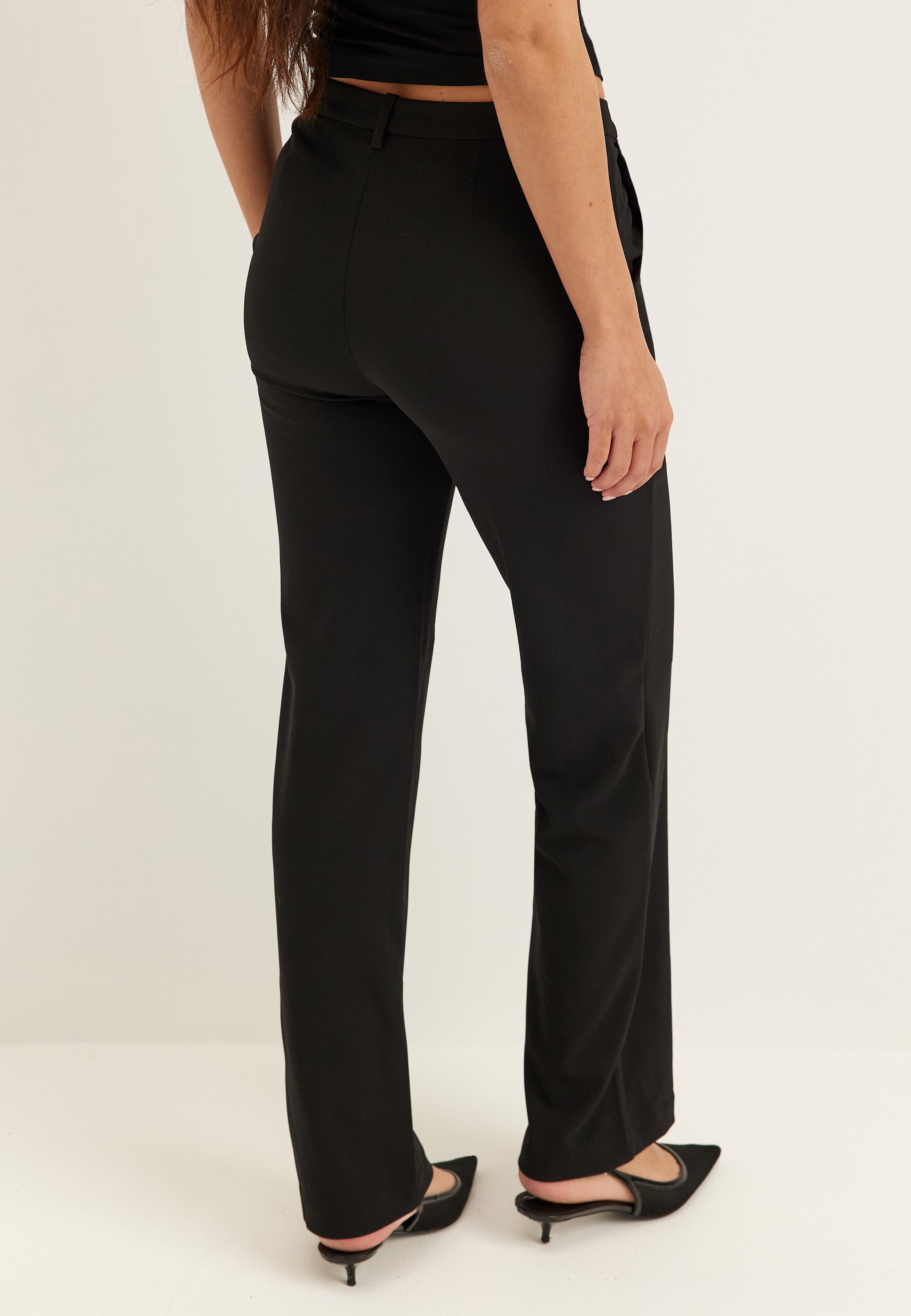 These black straight-leg suit trousers are an easy go-to for work, dinner plans, and dressed-up evenings when you want a clean, flattering fit without feeling restricted. The straight fit keeps the look polished and versatile, while the stretchy quality adds everyday comfort that makes them feel as good as they look.