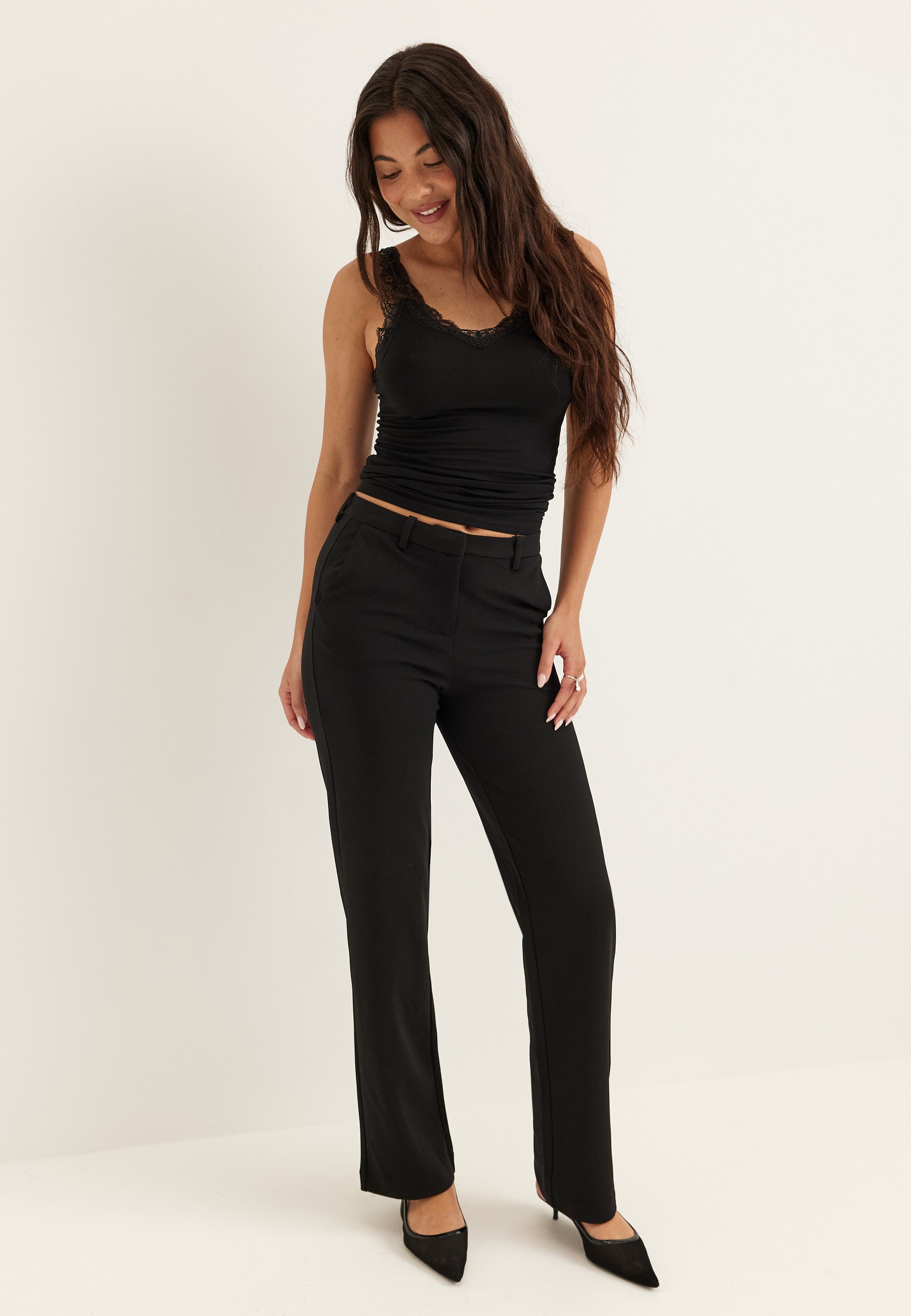 What sets this pair apart is how seamlessly it moves between smart tailoring and all-day wear. If you’re looking for black tailored trousers that work for the office, parties, and more dressed-up everyday outfits, this is the kind of pair you’ll keep reaching for.