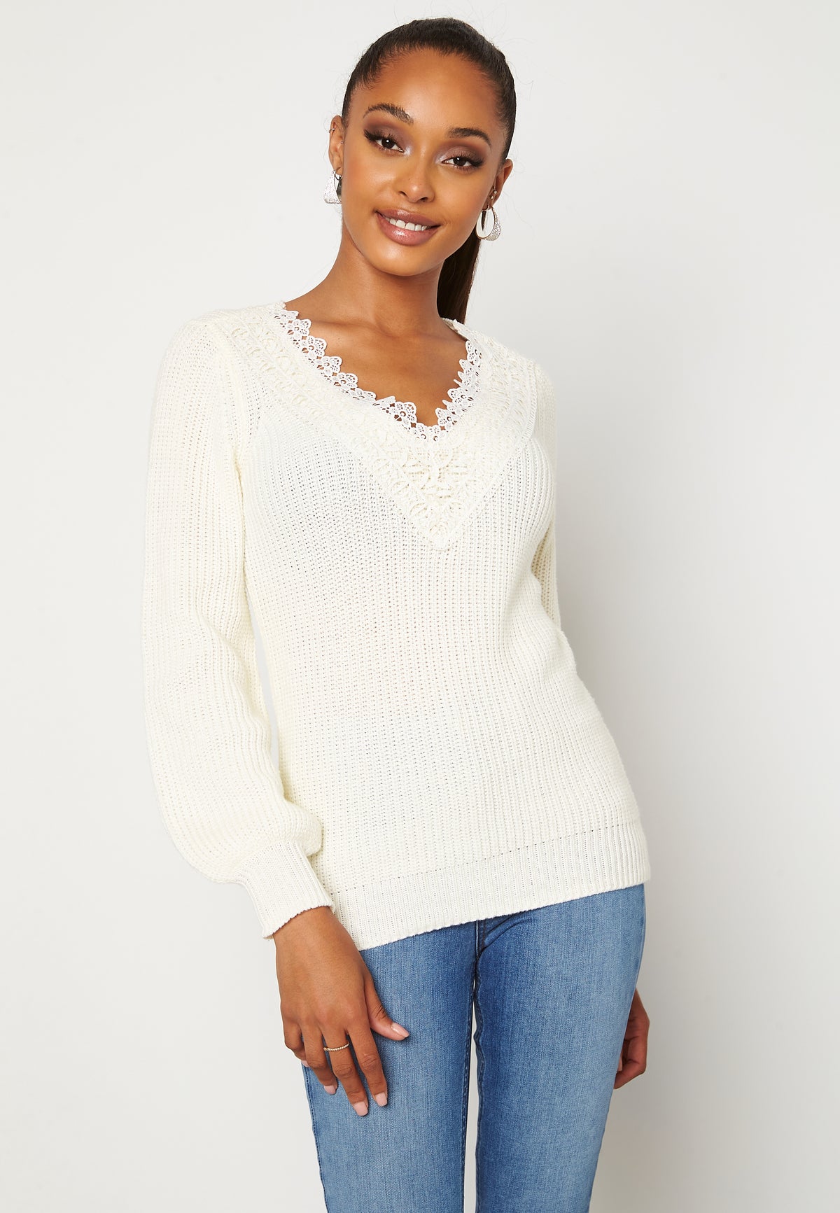 Knitted sweater with lace from HAPPY HOLLY. The sweater is soft and a trendy, stretchy quality. - Puff sleeves with cuffs.