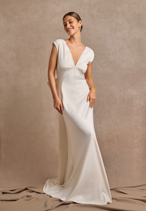 - Open back with bow at the back.