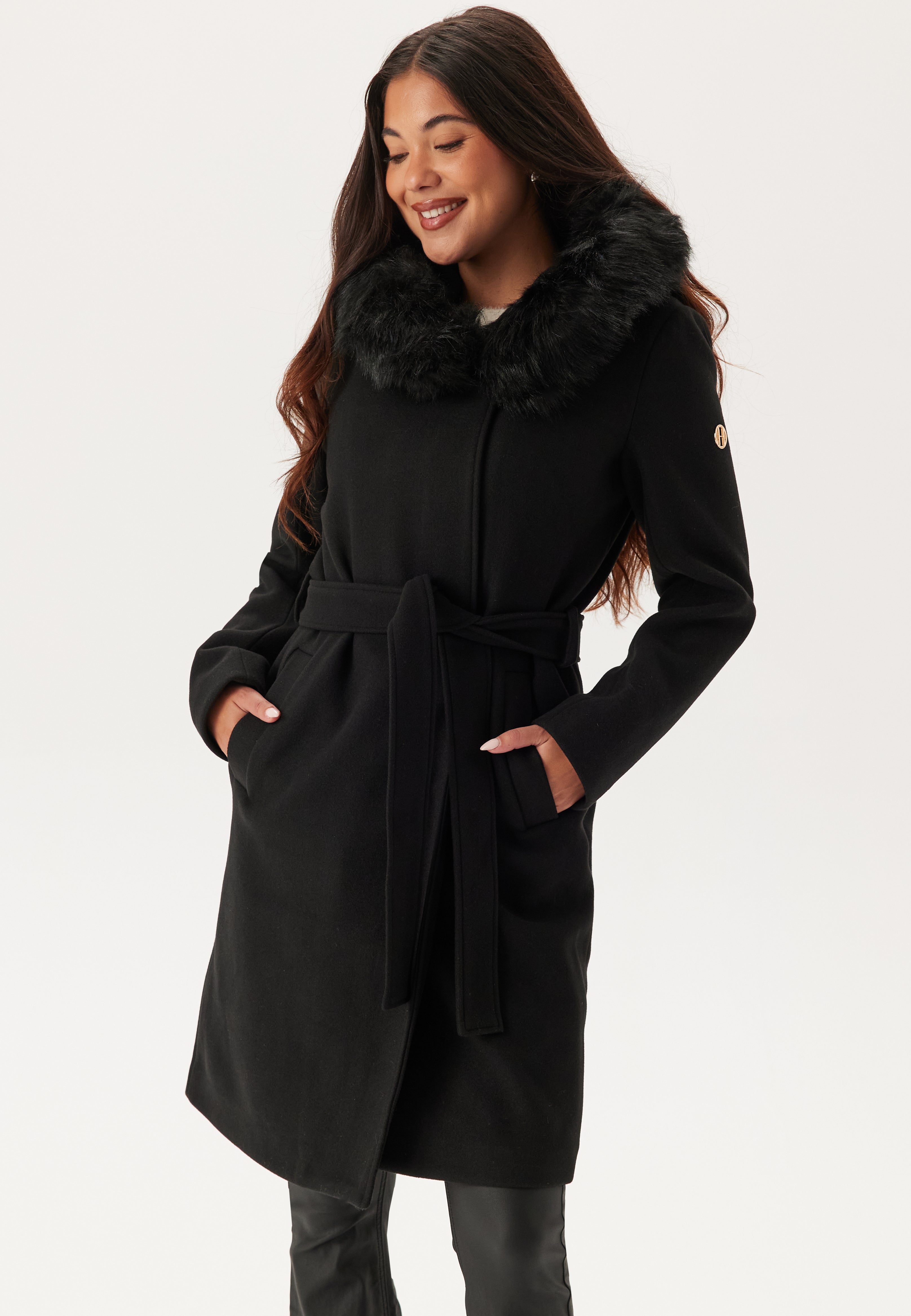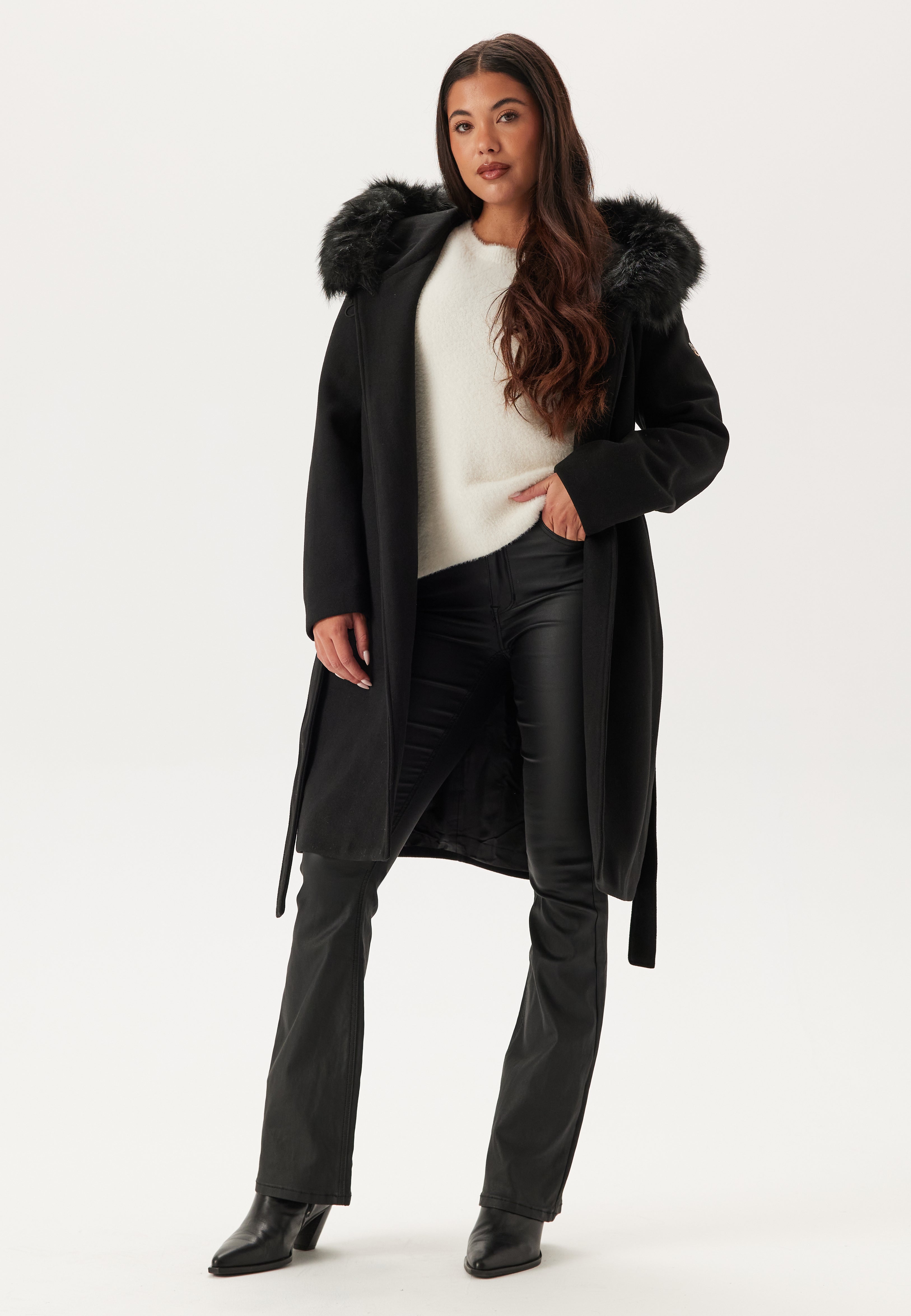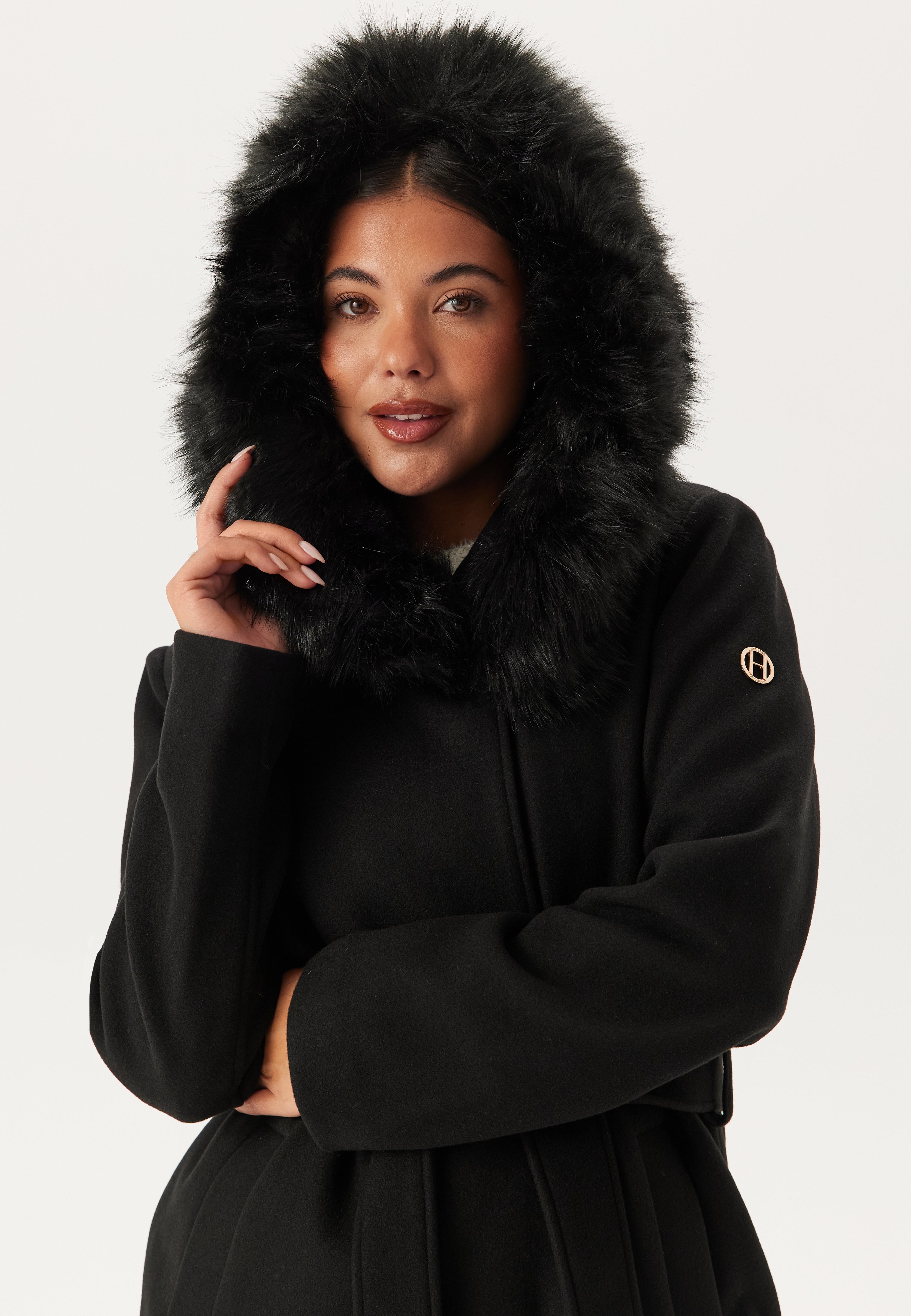 - Huva med avtagbar fuskpälskant.