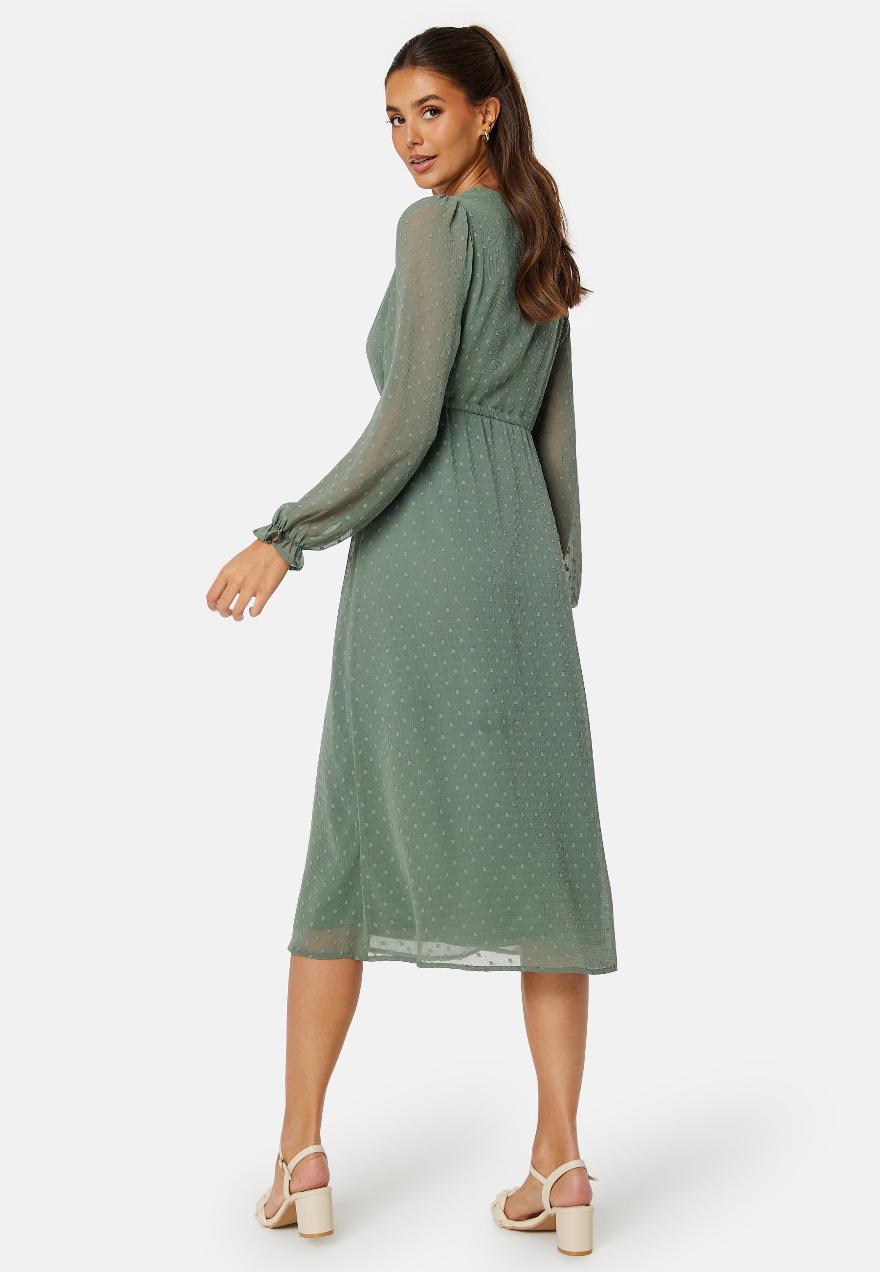 Söt klänning från BUBBLEROOM Puffärm med volang nertill.