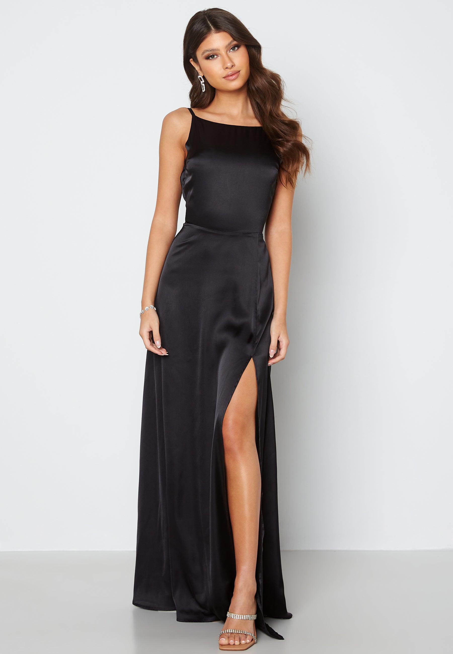 Elegant klänning i satin från Bubbleroom Occasion med öppen rygg och feminin drapering.