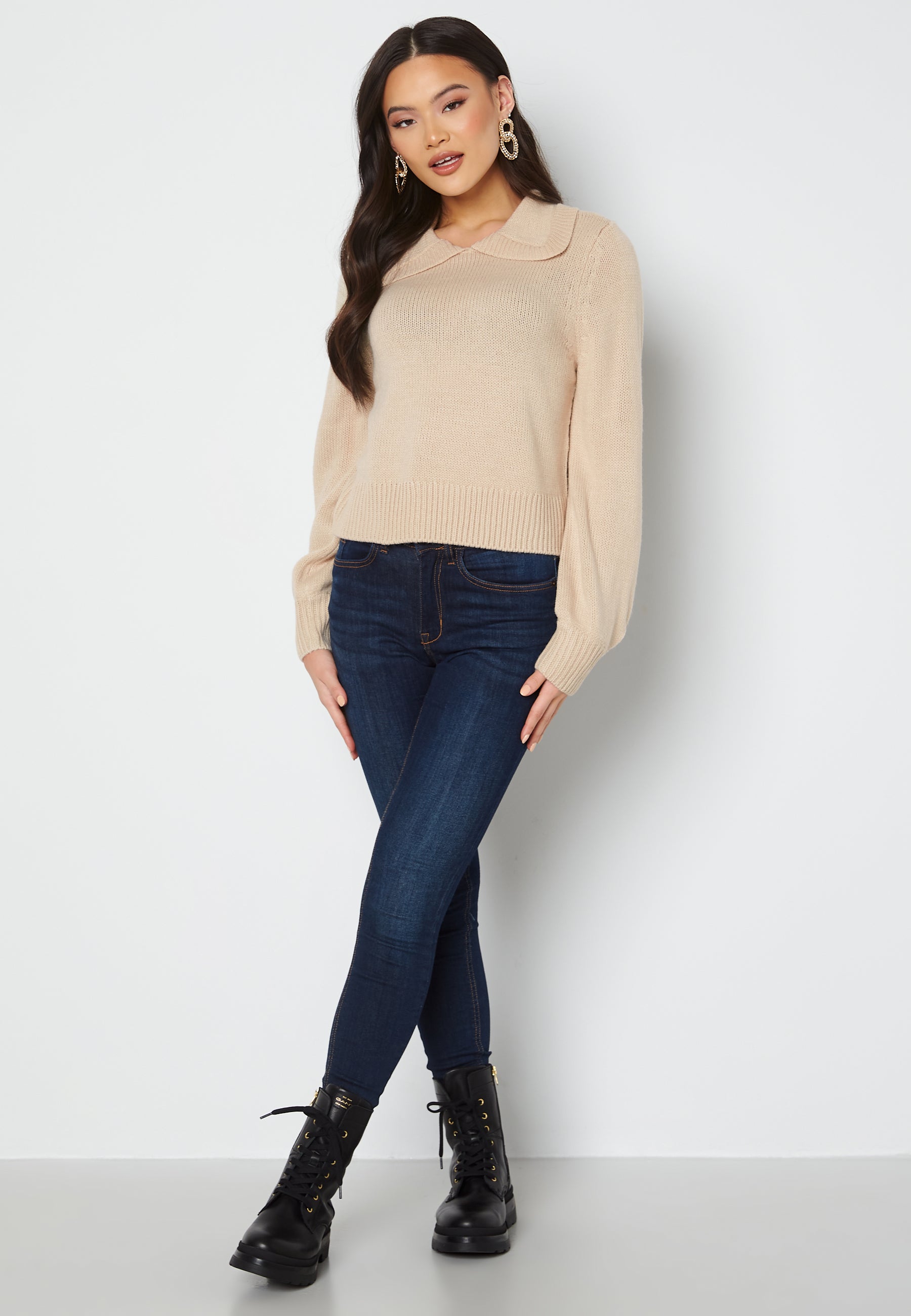 Pretty knit jumper with collar.