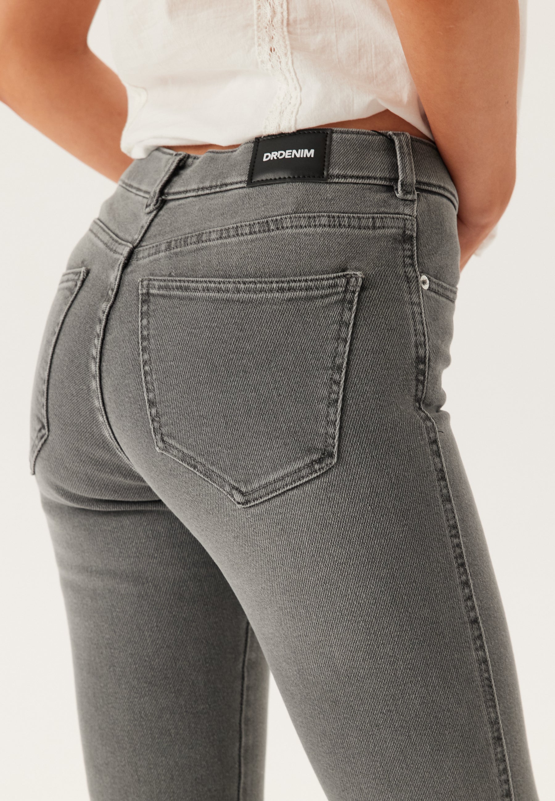 - Skinny fit upptill med utsvängt ben.