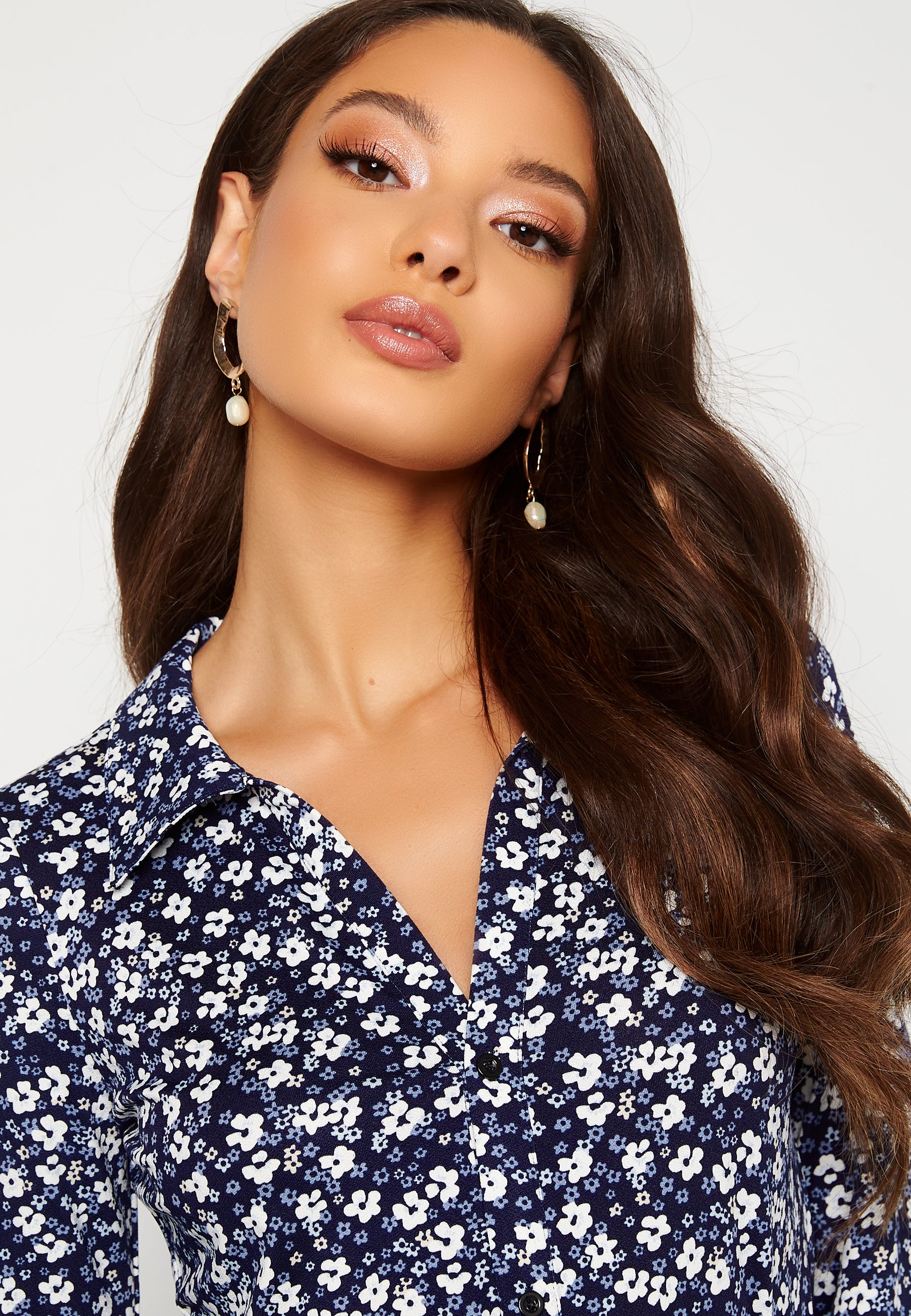 • Crease-free midi dress in jersey with shirt collar.