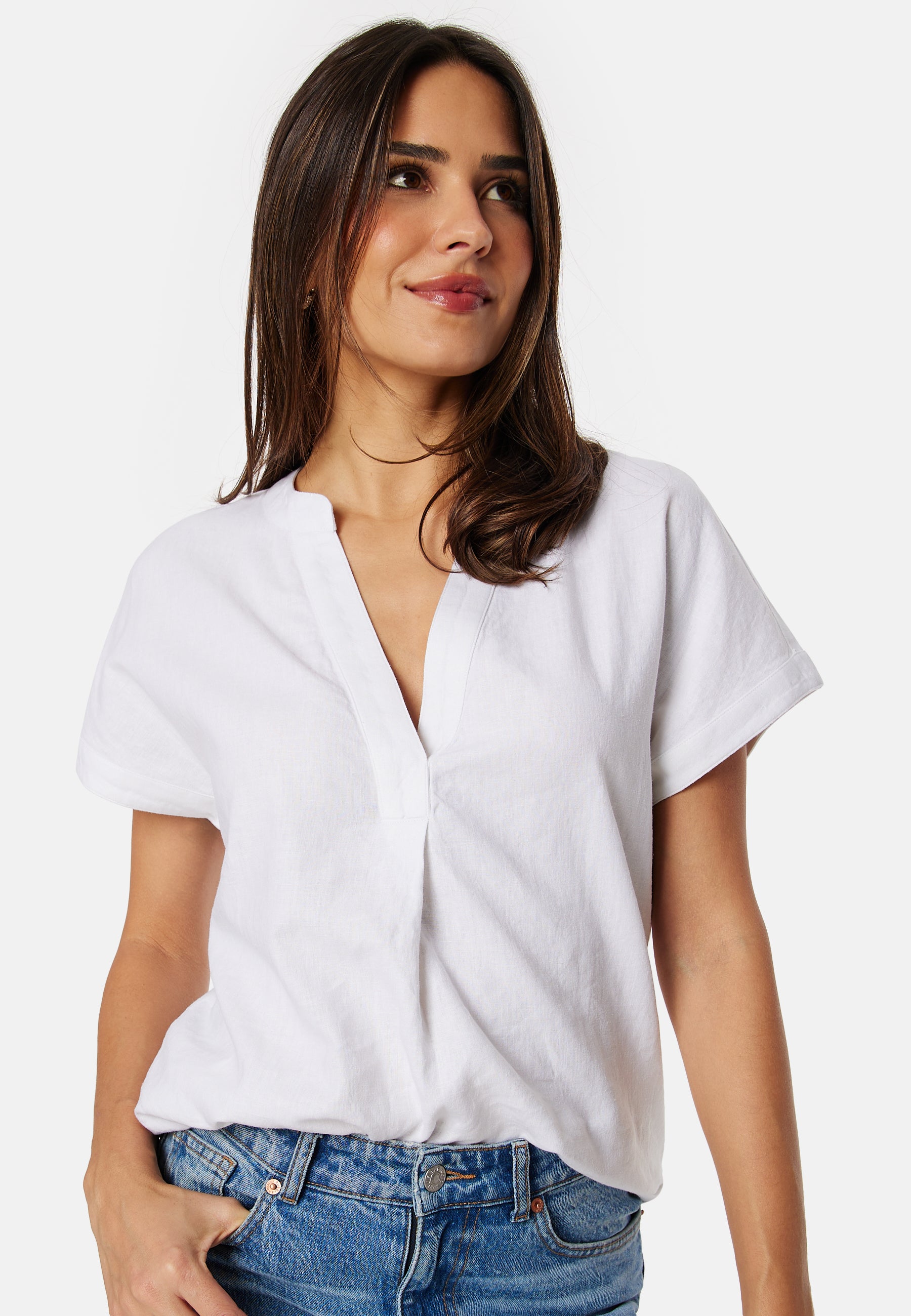 - V-ringad halsringning.