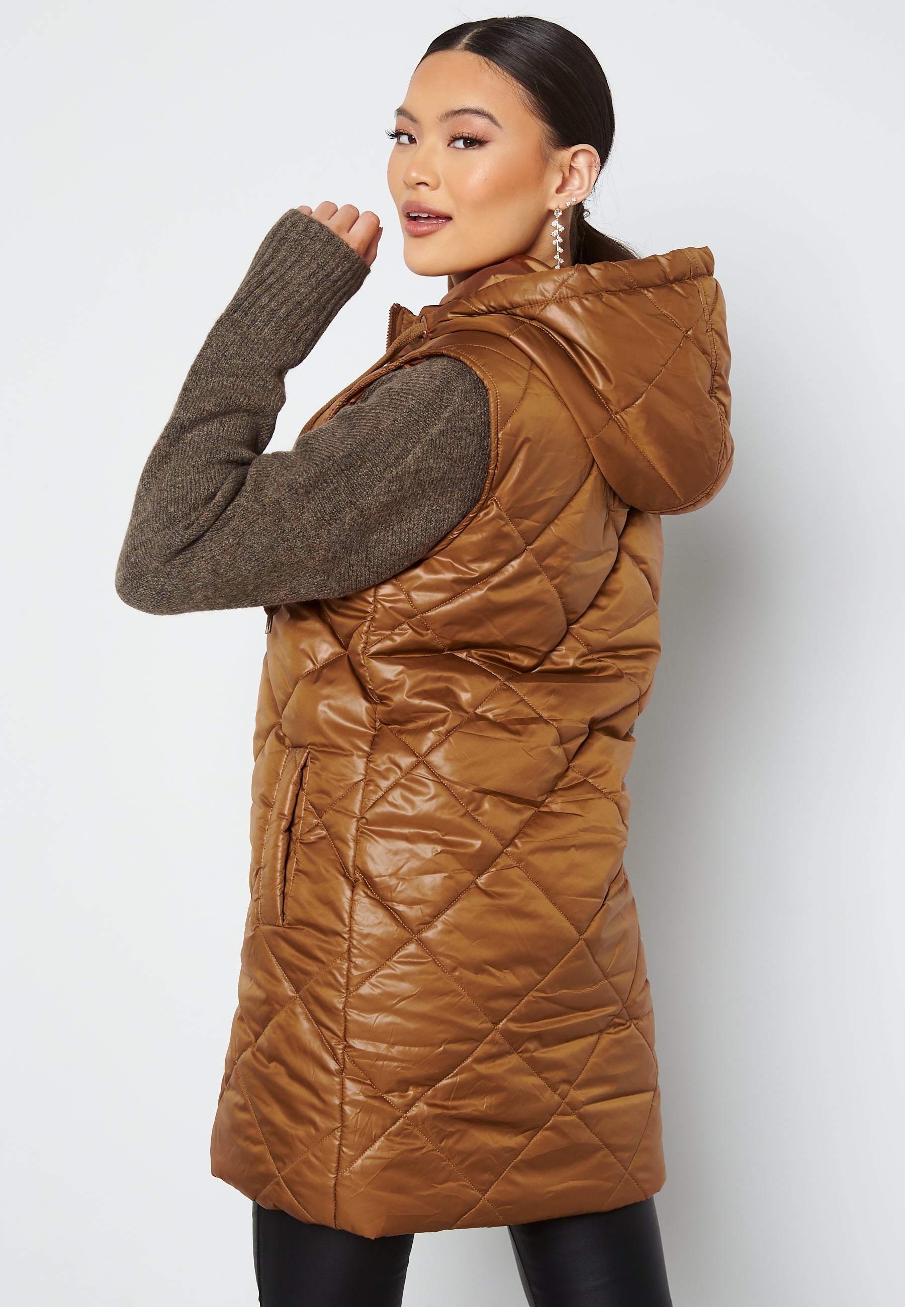 - Quilted hood with lacing