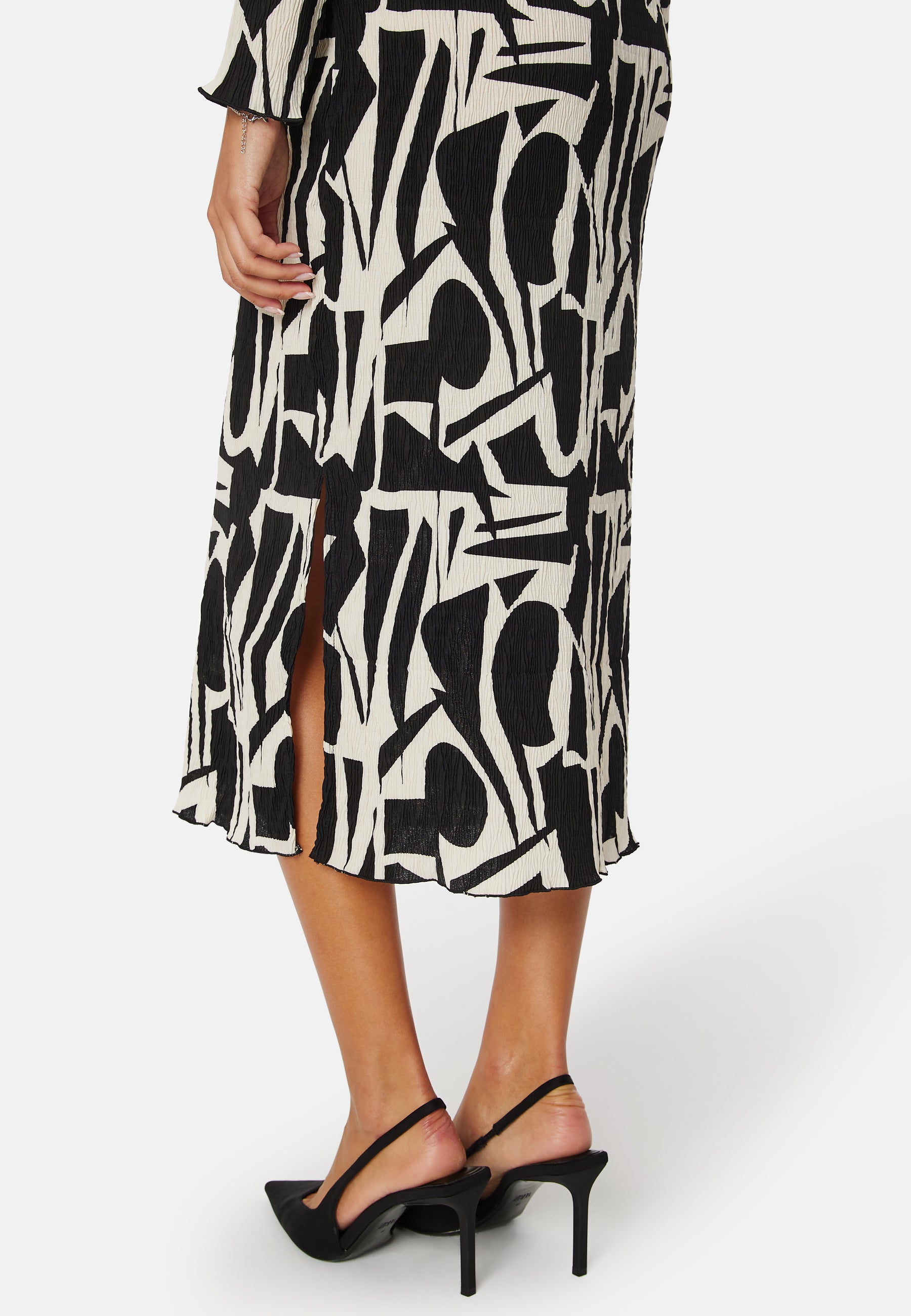 - Stretchigt material med veckad struktur.