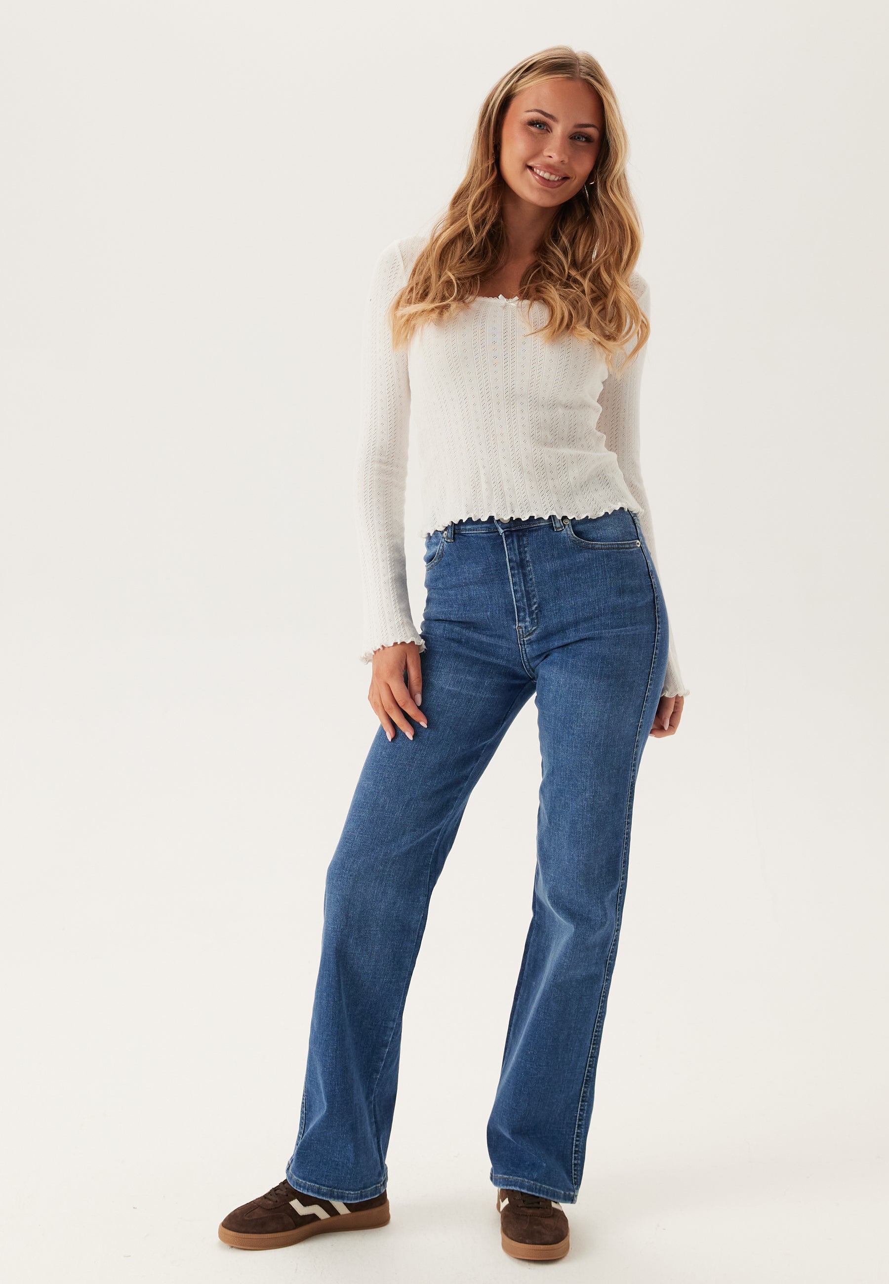 - Slim fit upptill med rakt ben