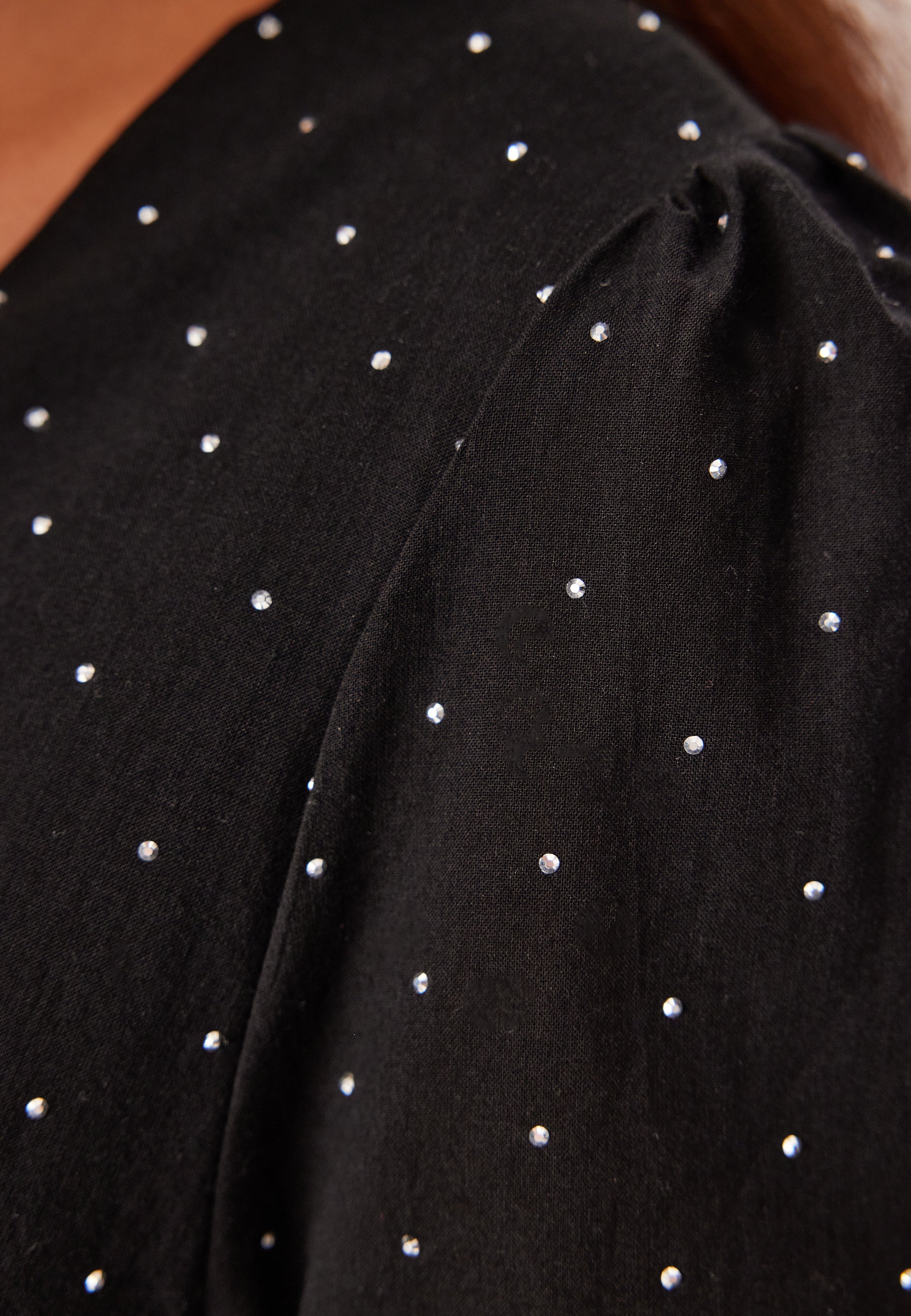 - Vävt material utan stretch med glittrande detaljer